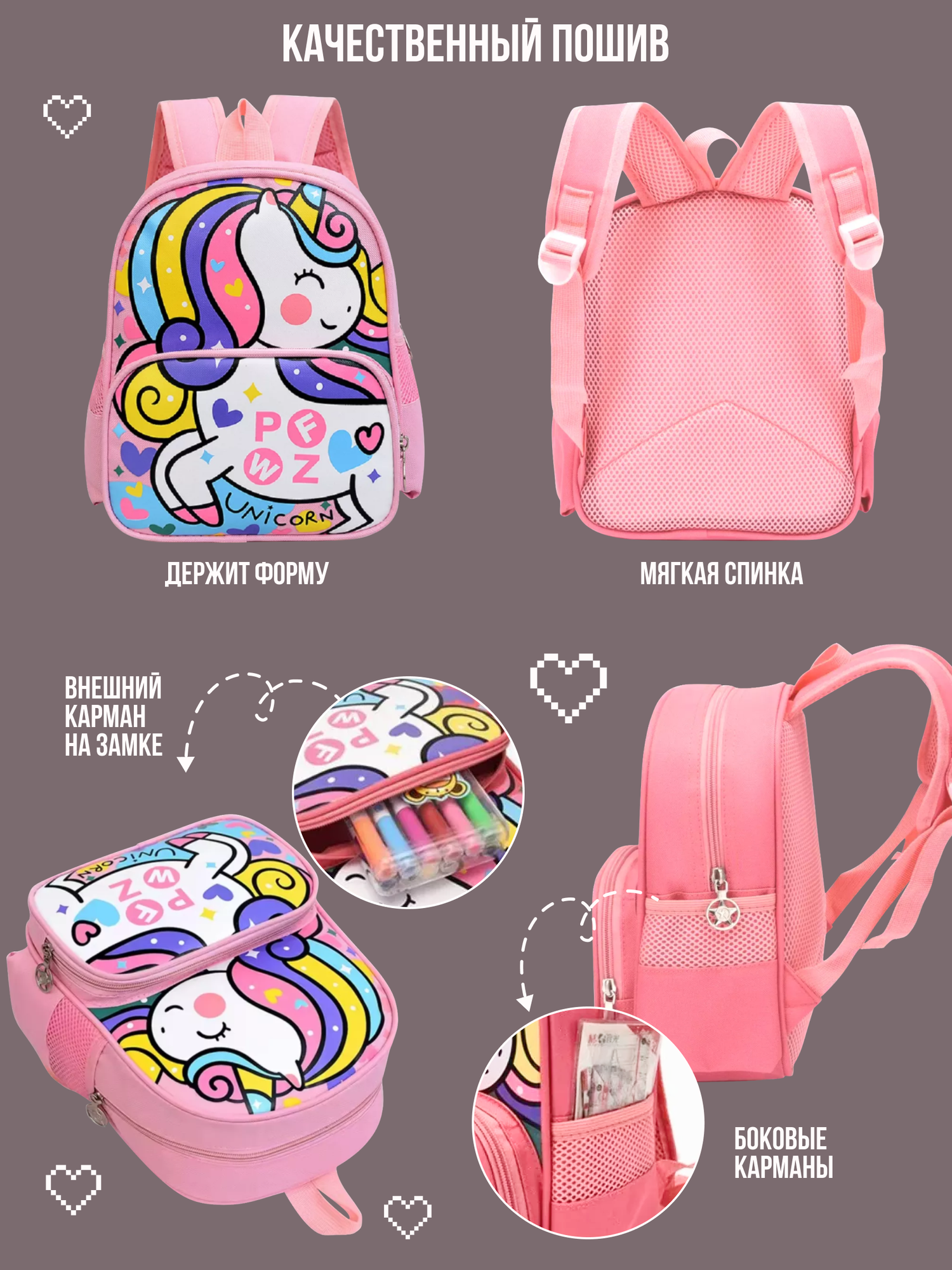 Купить Детский маленький рюкзак для девочек в садик с принтом Единорог, высота 27 см
