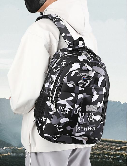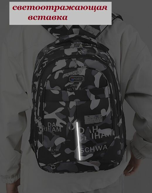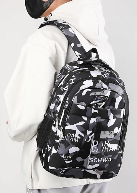 Купить Рюкзак школьный повседневный универсальный камуфляж черный