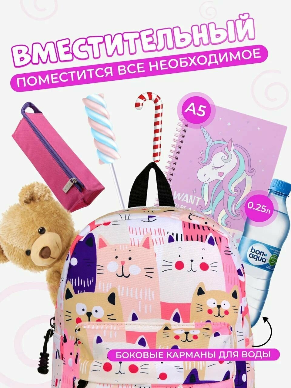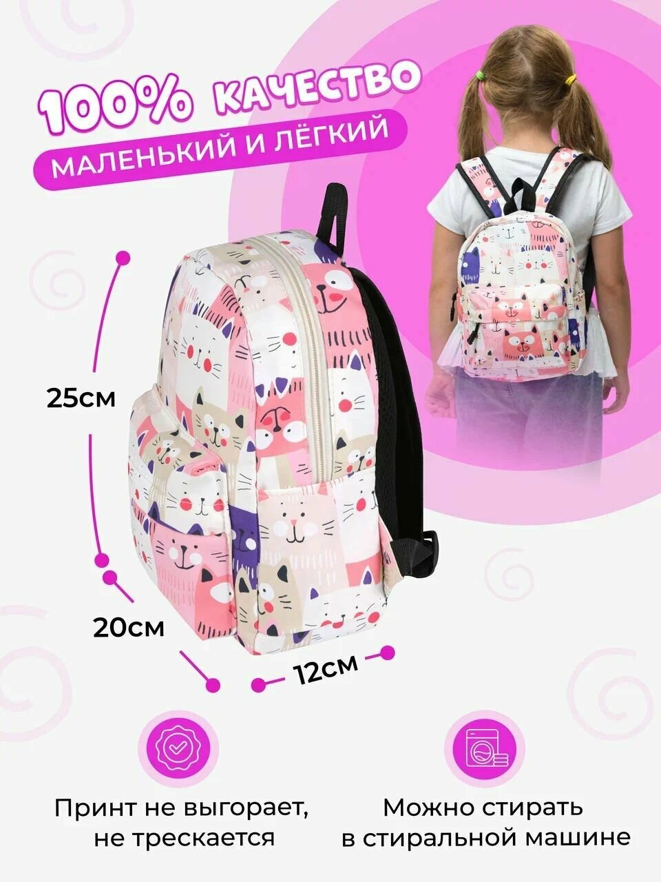 Рюкзак детский для девочек дошкольный с котятами TREND IDEA, цвет розовый интересное: