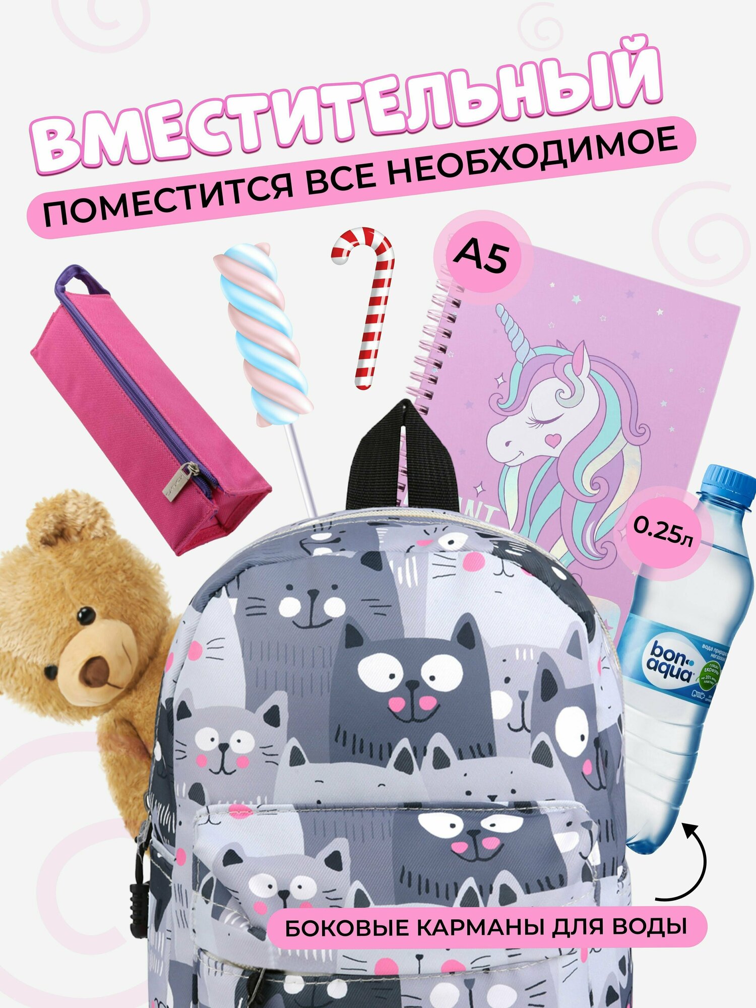 Рюкзак детский для девочек дошкольный с котятами TREND IDEA, цвет серый интересное: