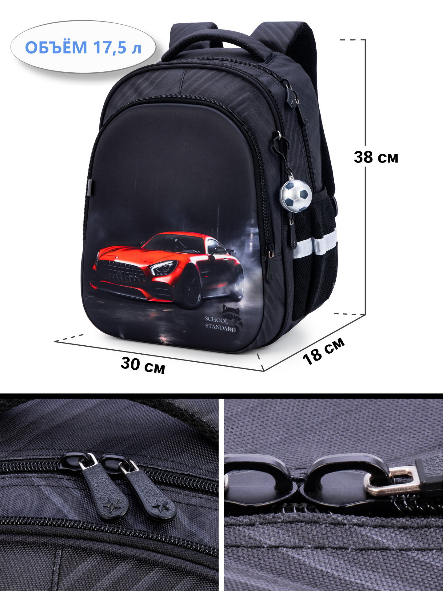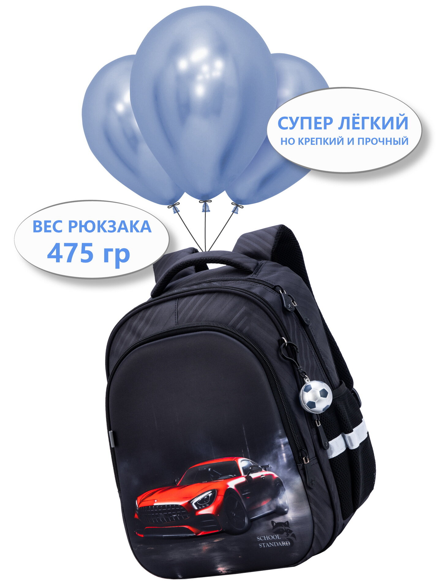 Рюкзак школьный 17,5 л для мальчика начальной школы, с анатомической спинкой + брелок, School Standard (Скул Стандарт)