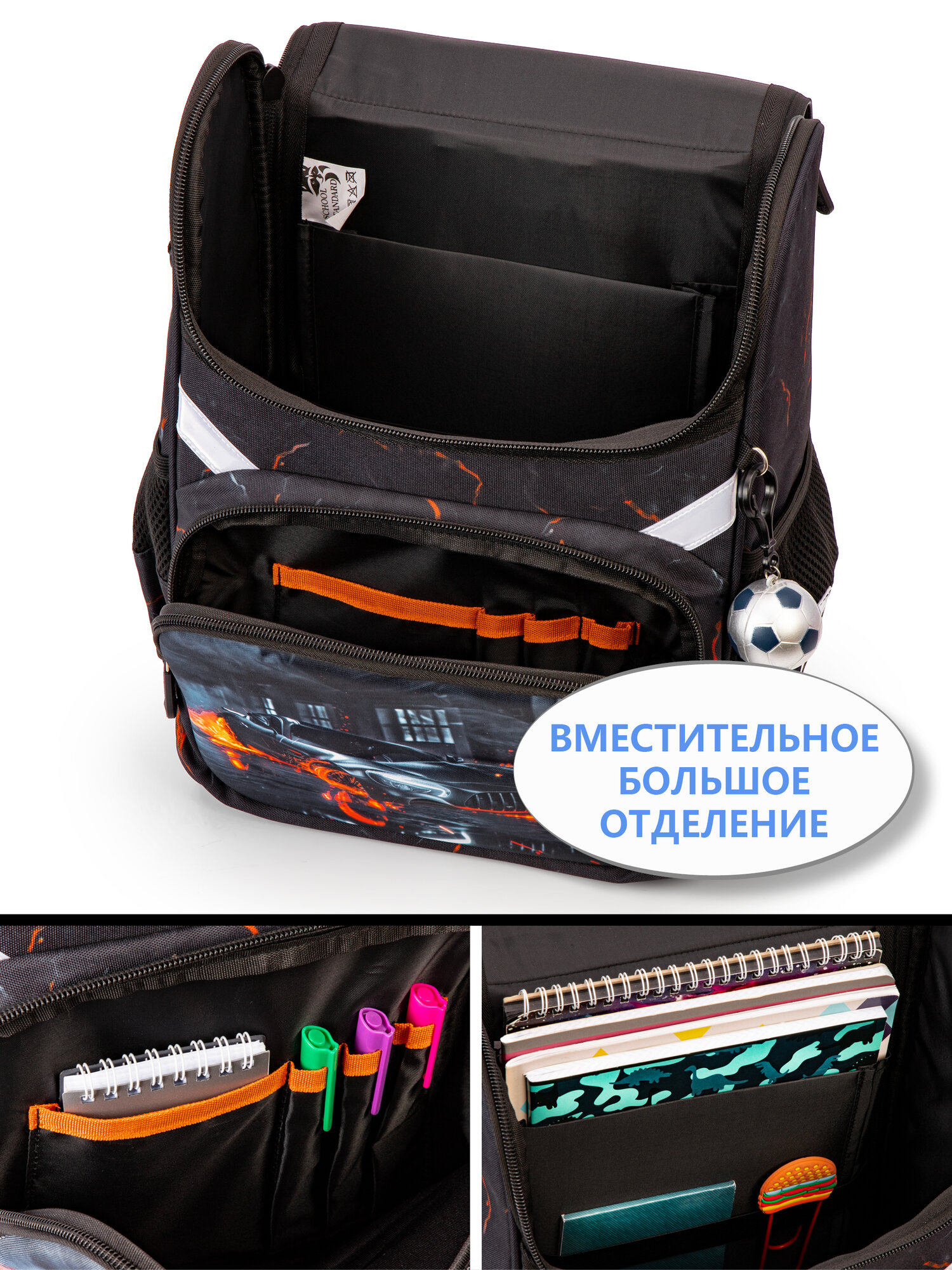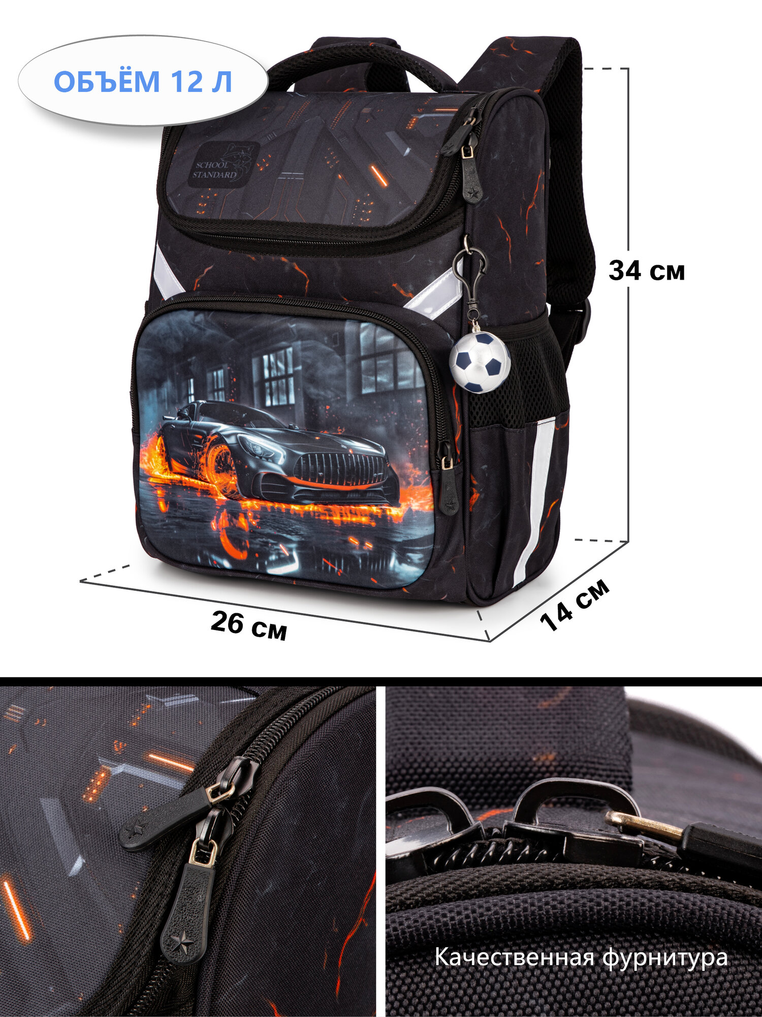 Ранец школьный для мальчика начальной школы анатомическая спинка, набор 6 в 1 + брелок, School Standard (Скул Стандарт) интересное: