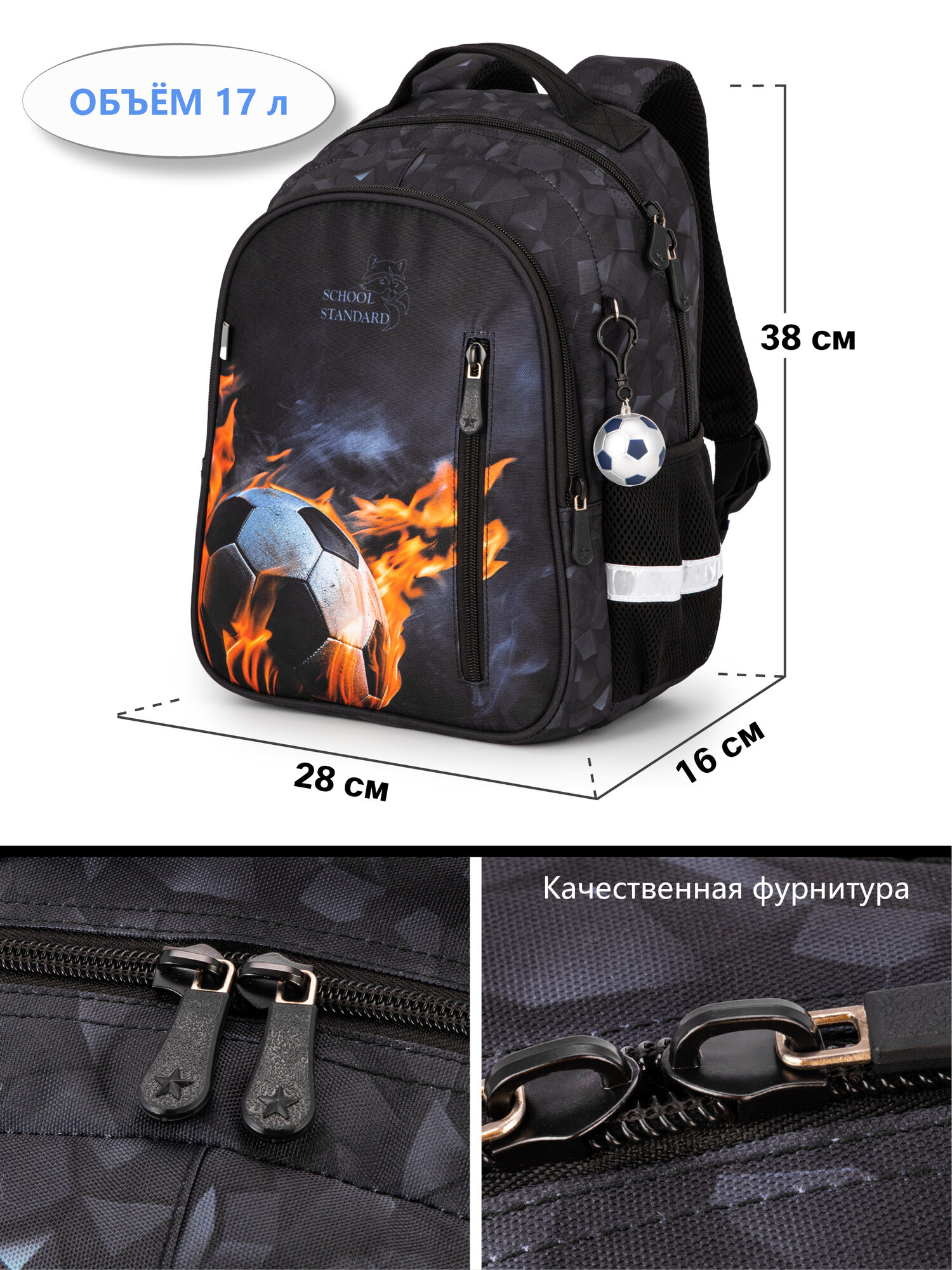 Рюкзак школьный для мальчика младших классов 17 л А4 анатомическая спинка + брелок, School Standard (Скул Стандарт)