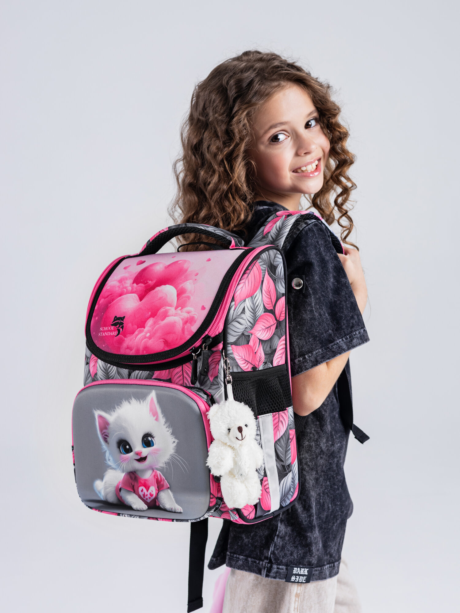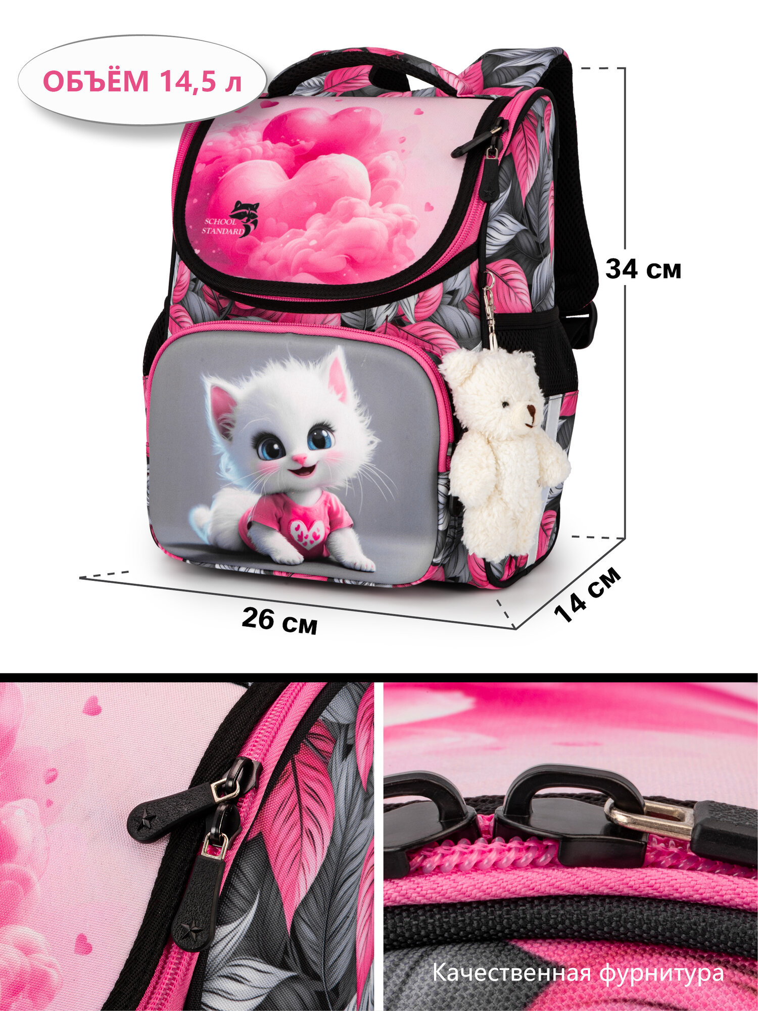 Ранец школьный 14 л А4 для девочки младших классов, анатомическая спинка + брелок, School Standard (Скул Стандарт)