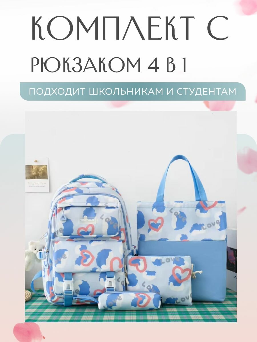 Рюкзак школьный для девочек универсальный 4 в 1 синий интересное: