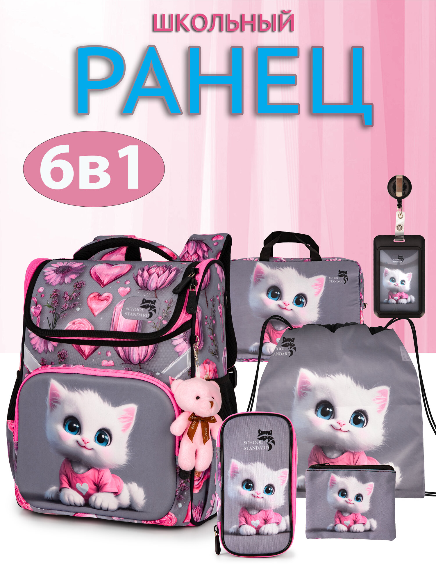Купить Ранец школьный для девочки первоклассника анатомическая спинка, набор 6 в 1 + брелок, School Standard (Скул Стандарт)