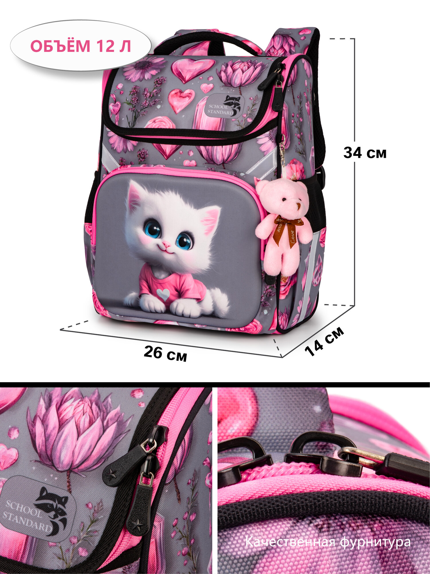 Ранец школьный для девочки младших классов анатомическая спинка, набор 6 в 1 + брелок, School Standard (Скул Стандарт)