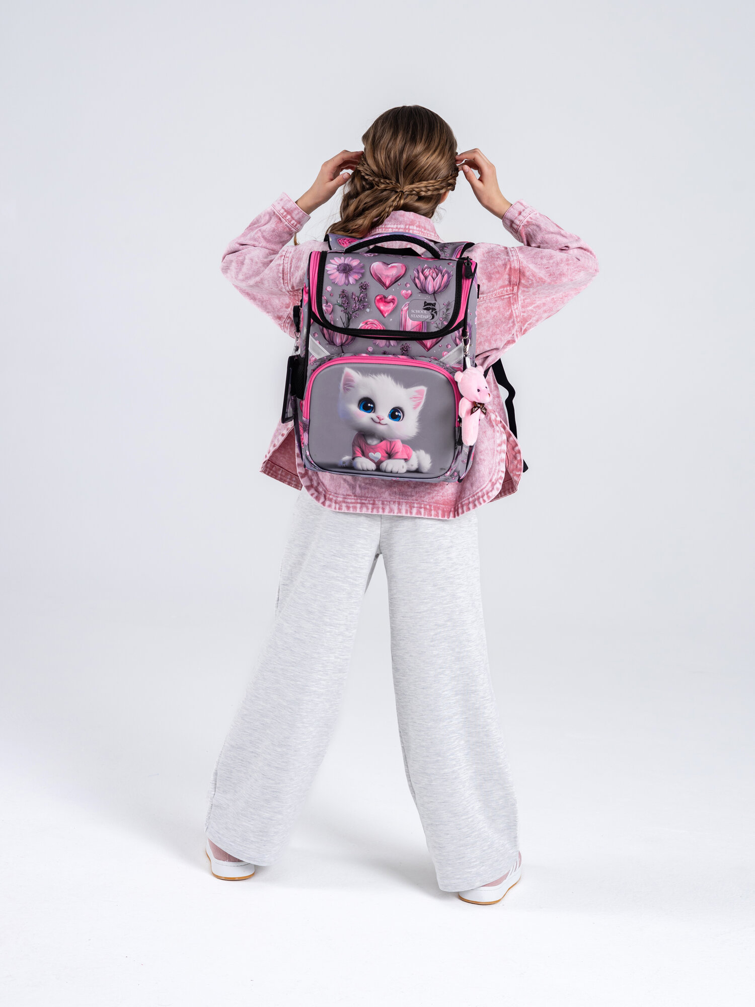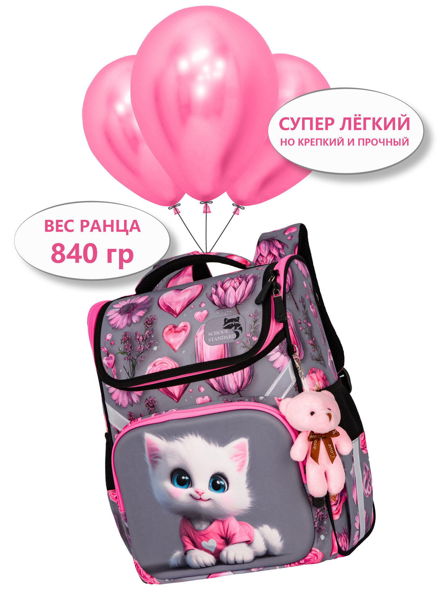 Ранец школьный для девочки начальной школы анатомическая спинка, набор 6 в 1 + брелок, School Standard (Скул Стандарт)