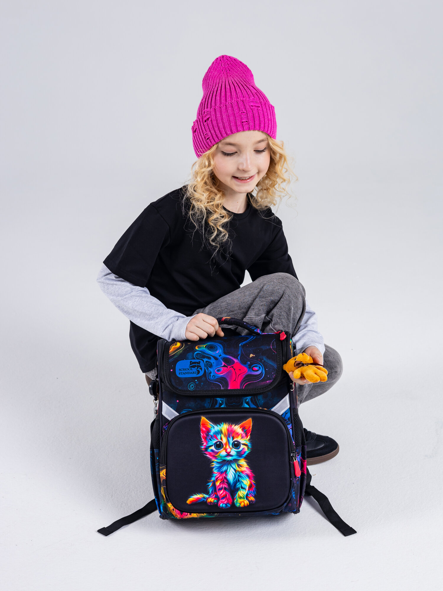 Ранец школьный для девочки младших классов анатомическая спинка, набор 6 в 1 + брелок, School Standard (Скул Стандарт) интересное: