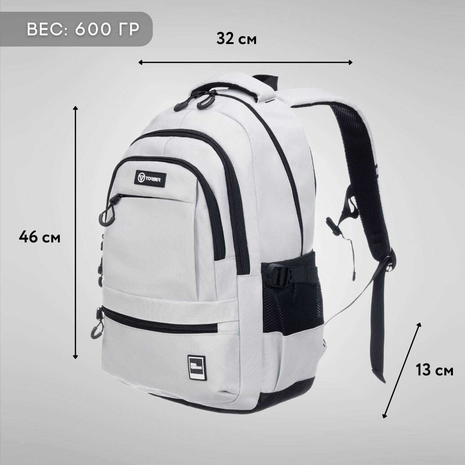 Рюкзак TORBER CLASS X, молочный, 19 л, 46х32х13 см, + Мешок для сменной обуви