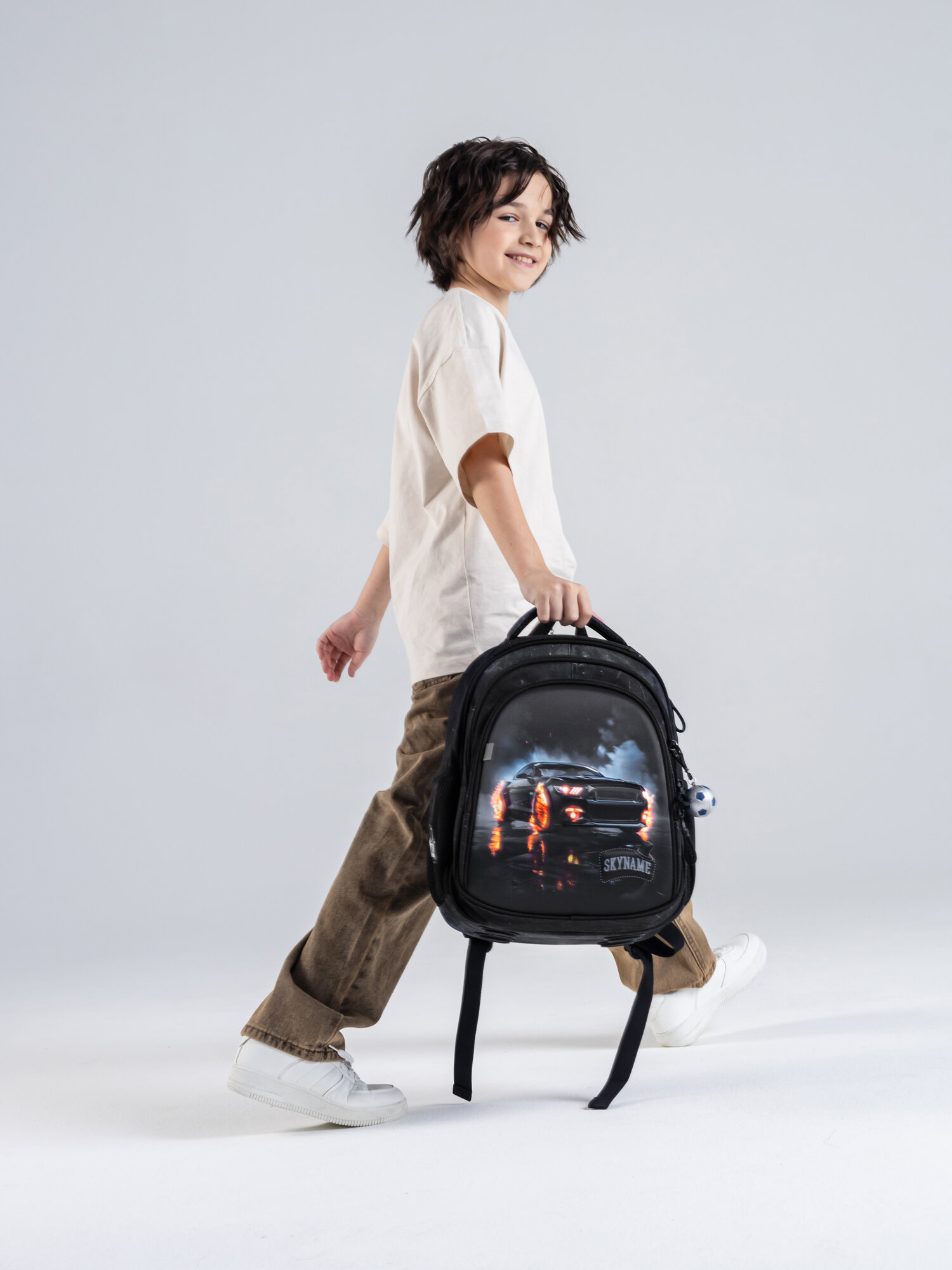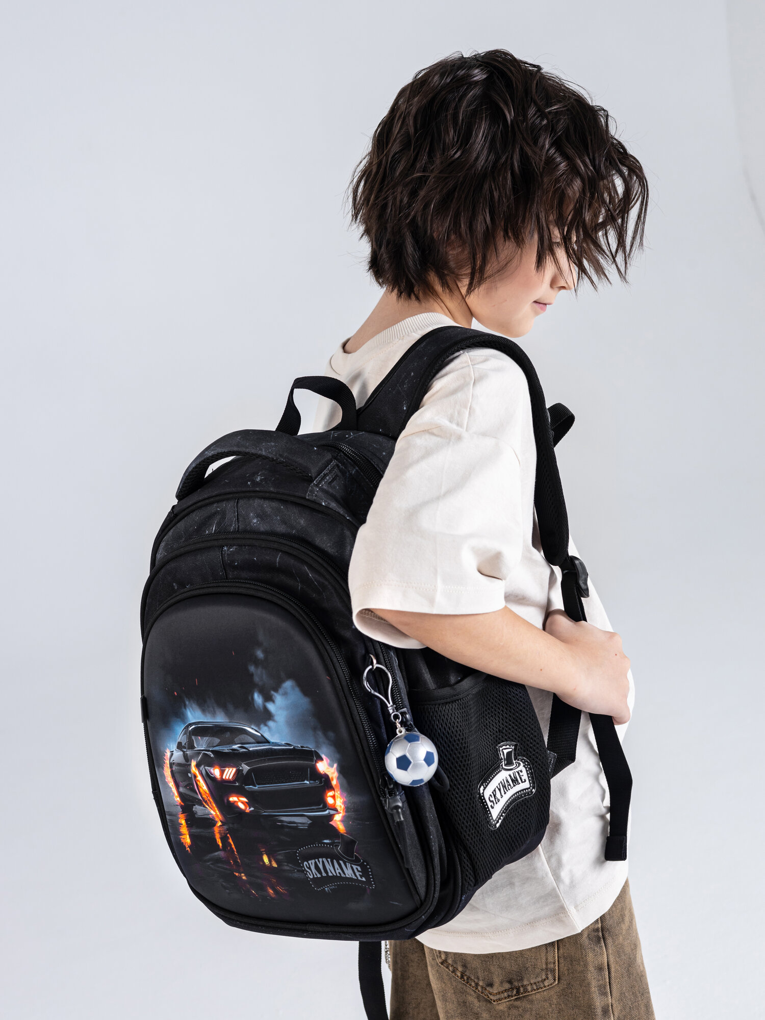 Рюкзак школьный для мальчиков 17 л для 1-4 классов с анатомической спинкой SkyName (СкайНейм) с брелоком-мячик
