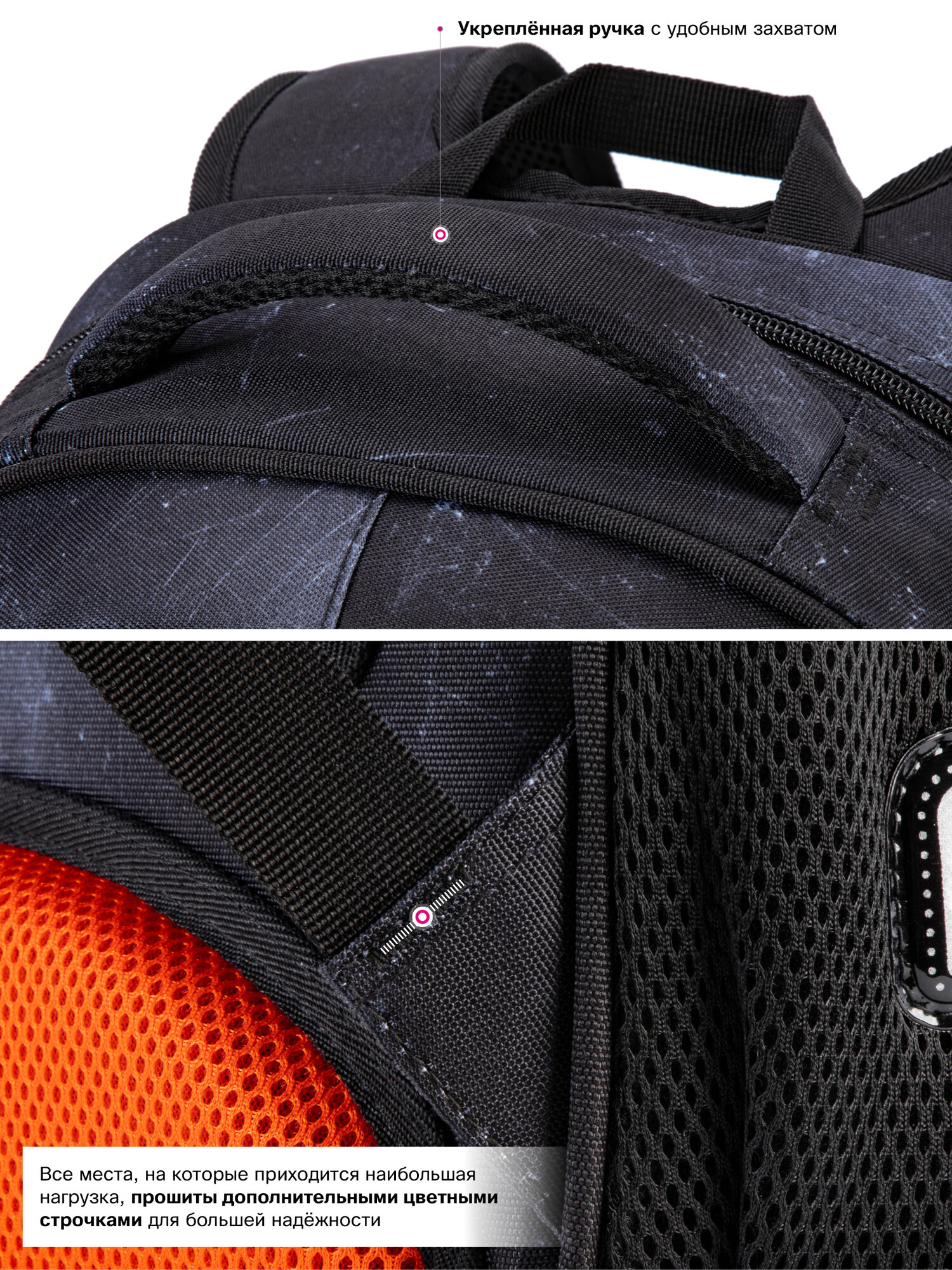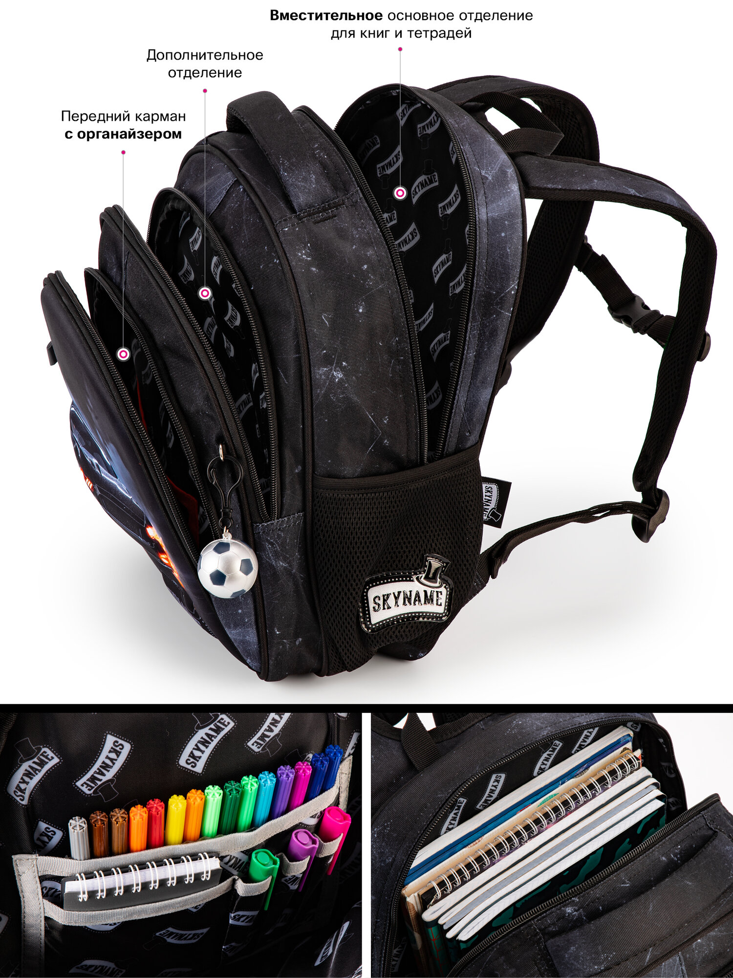 Рюкзак школьный для мальчика 17 л с анатомической спинкой SkyName (СкайНейм), с мячиком на брелоке интересное: