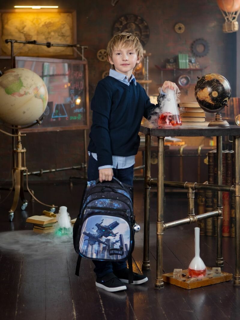 Рюкзак школьный для мальчика 17 л для младших классов с анатомической спинкой SkyName (СкайНейм) + брелок-мячик интересное: