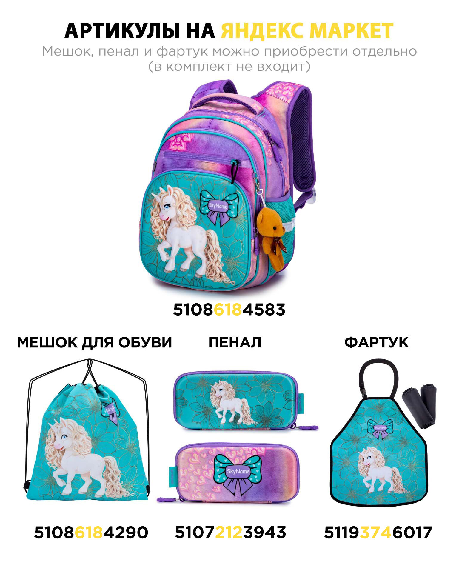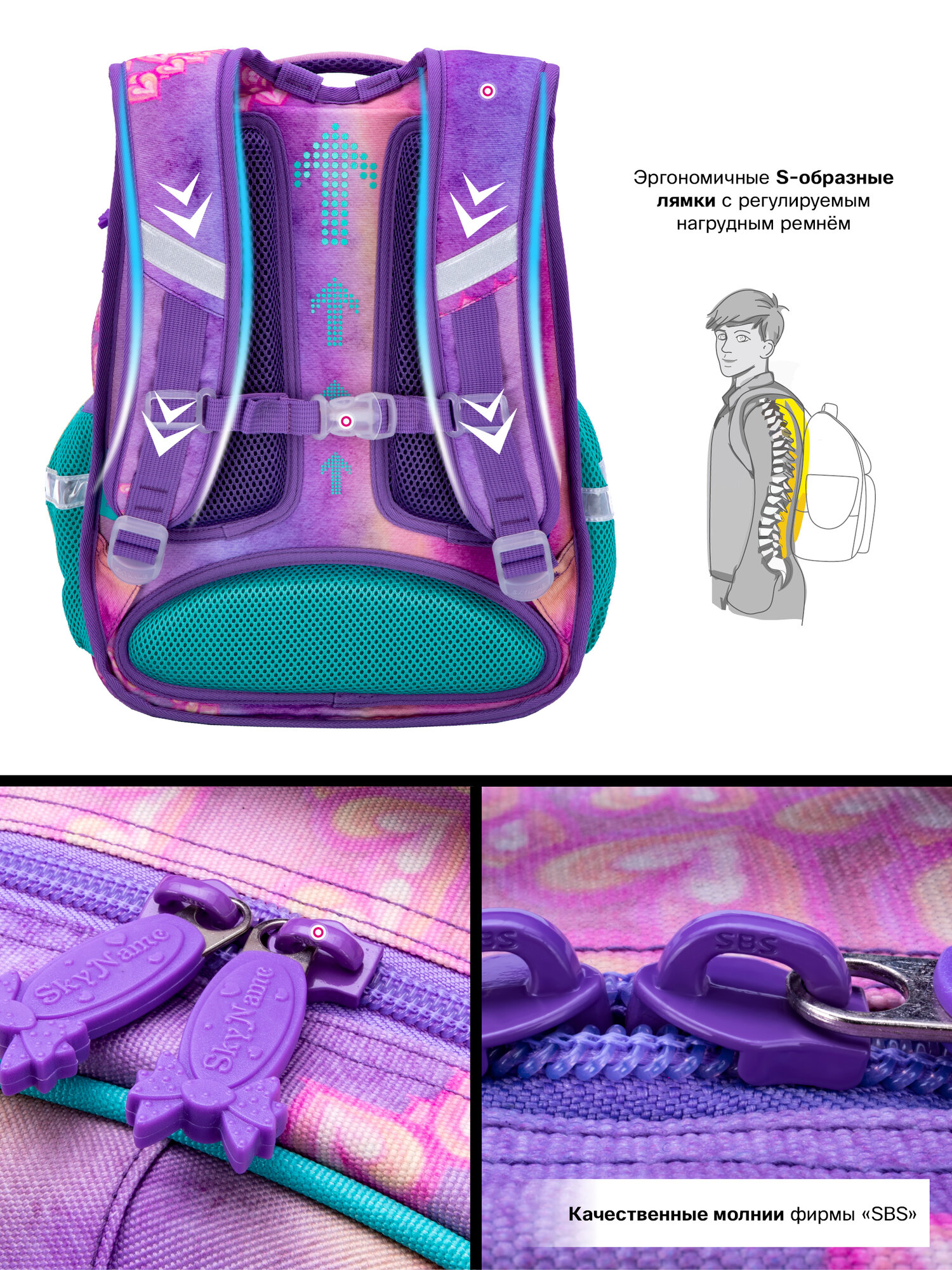 Рюкзак школьный для девочки 17 л с анатомической спинкой SkyName (СкайНейм), с мишкой на брелоке интересное: