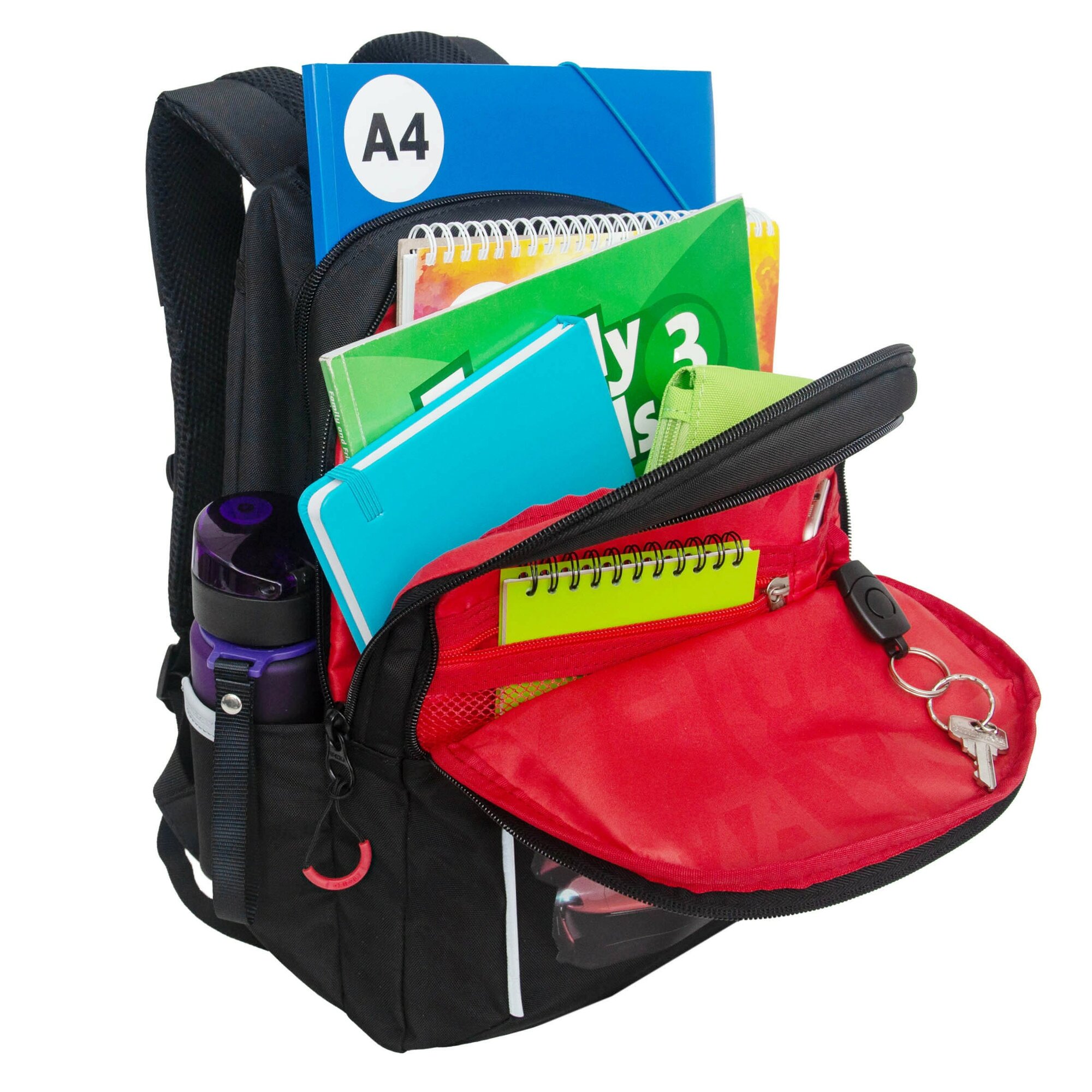 Рюкзак школьный с карманом для ноутбука 13", анатомической спинкой, для мальчика (черный-красный)