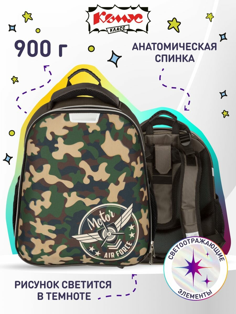 Ранец школьный Комус Класс Basic Military, ортопедический, 2 отделения, 4 кармана интересное: