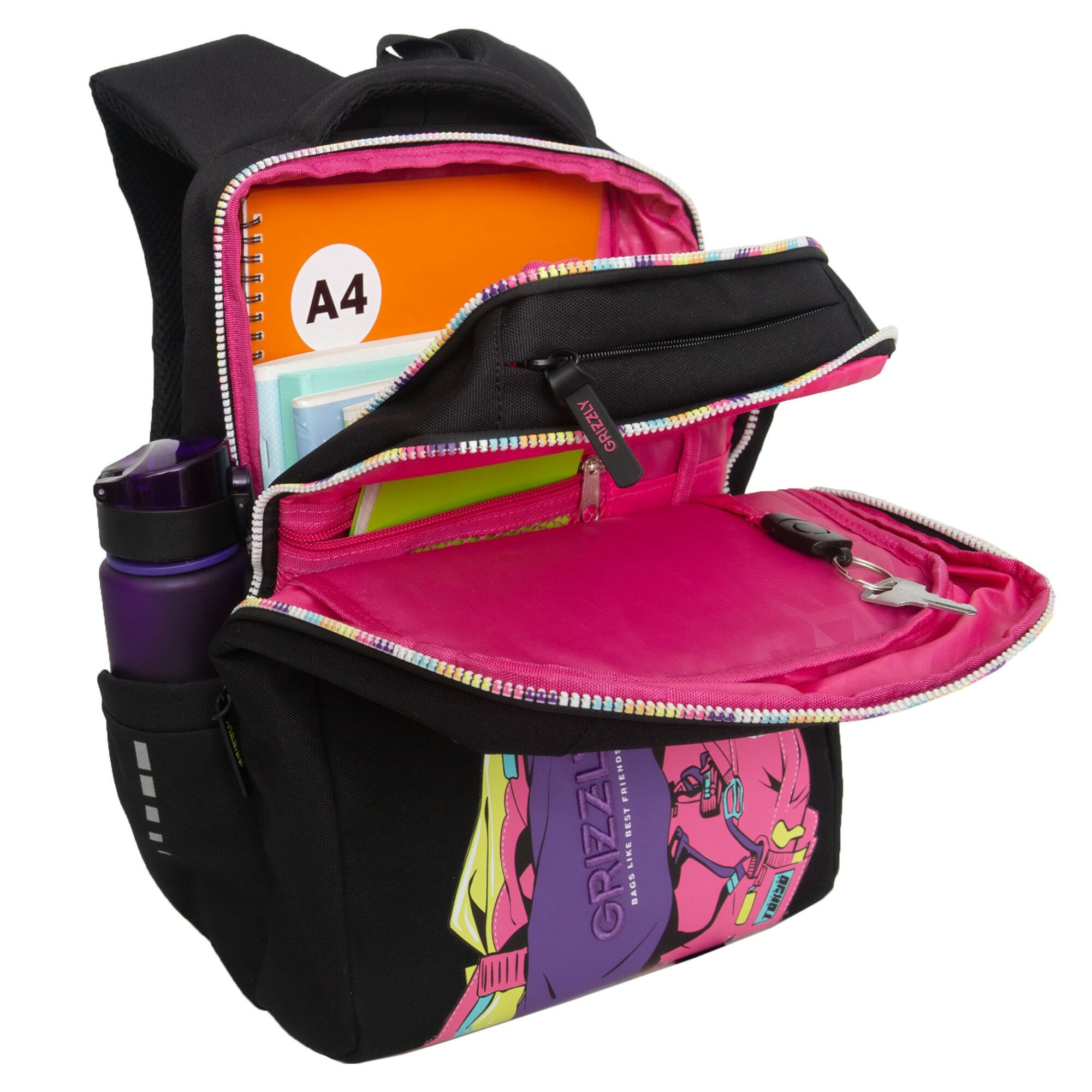 Рюкзак школьный GRIZZLY с карманом для ноутбука 13", двумя отделениями, анатомической спинкой, для девочки RG-566-1/2