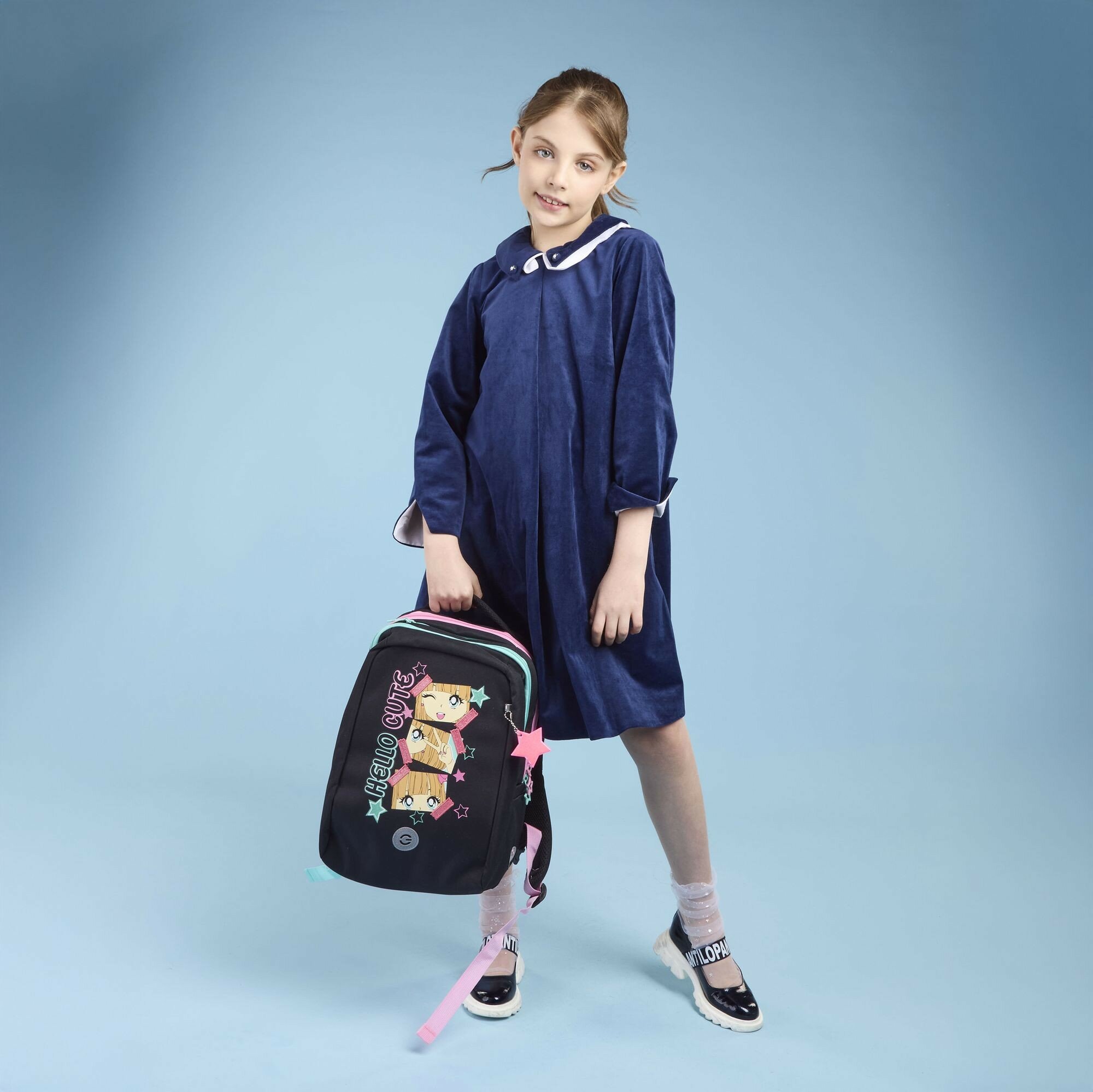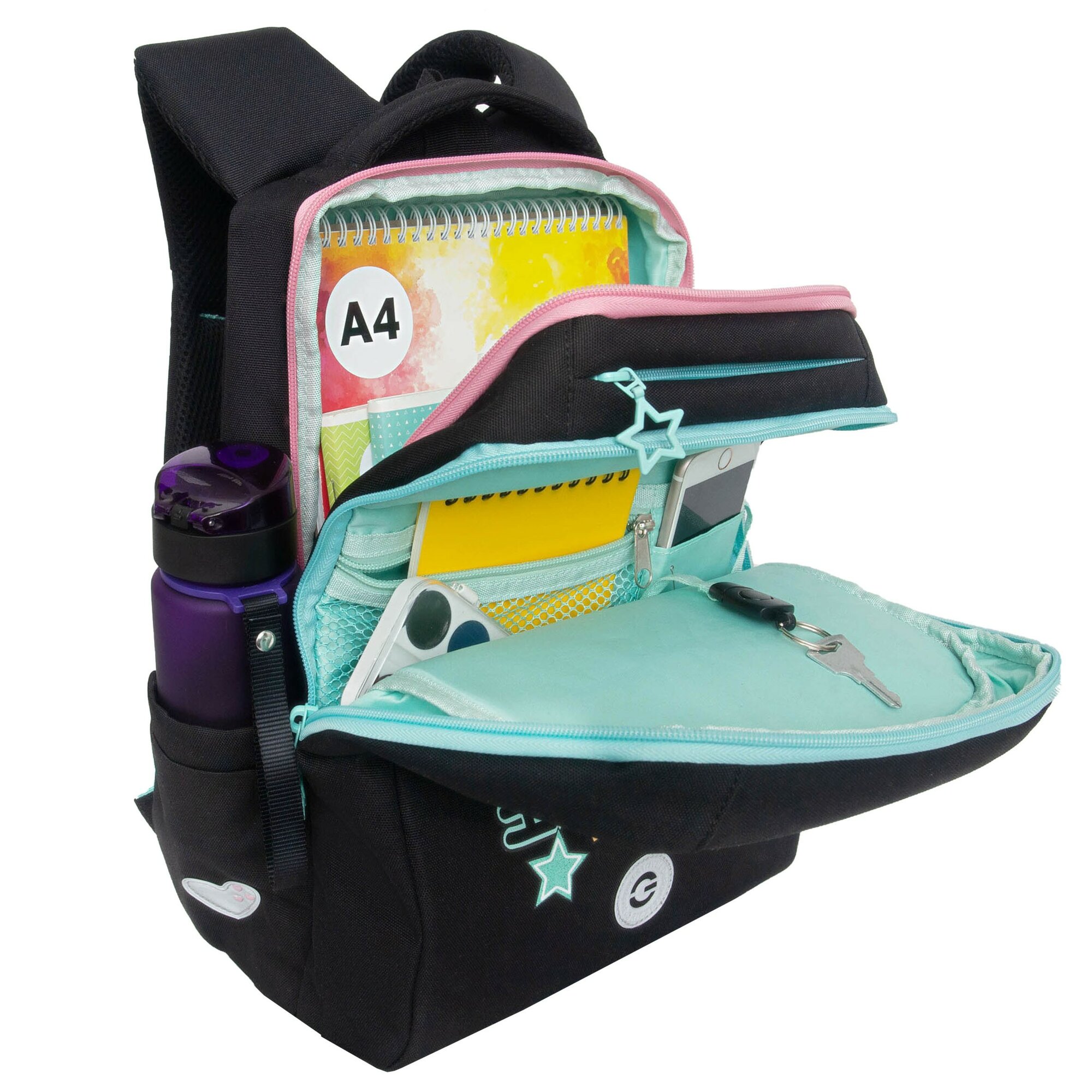 Рюкзак школьный GRIZZLY с карманом для ноутбука 13", двумя отделениями, анатомической спинкой, для девочки RG-566-1/2