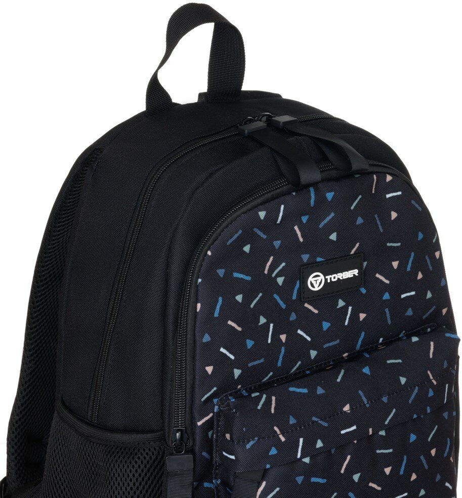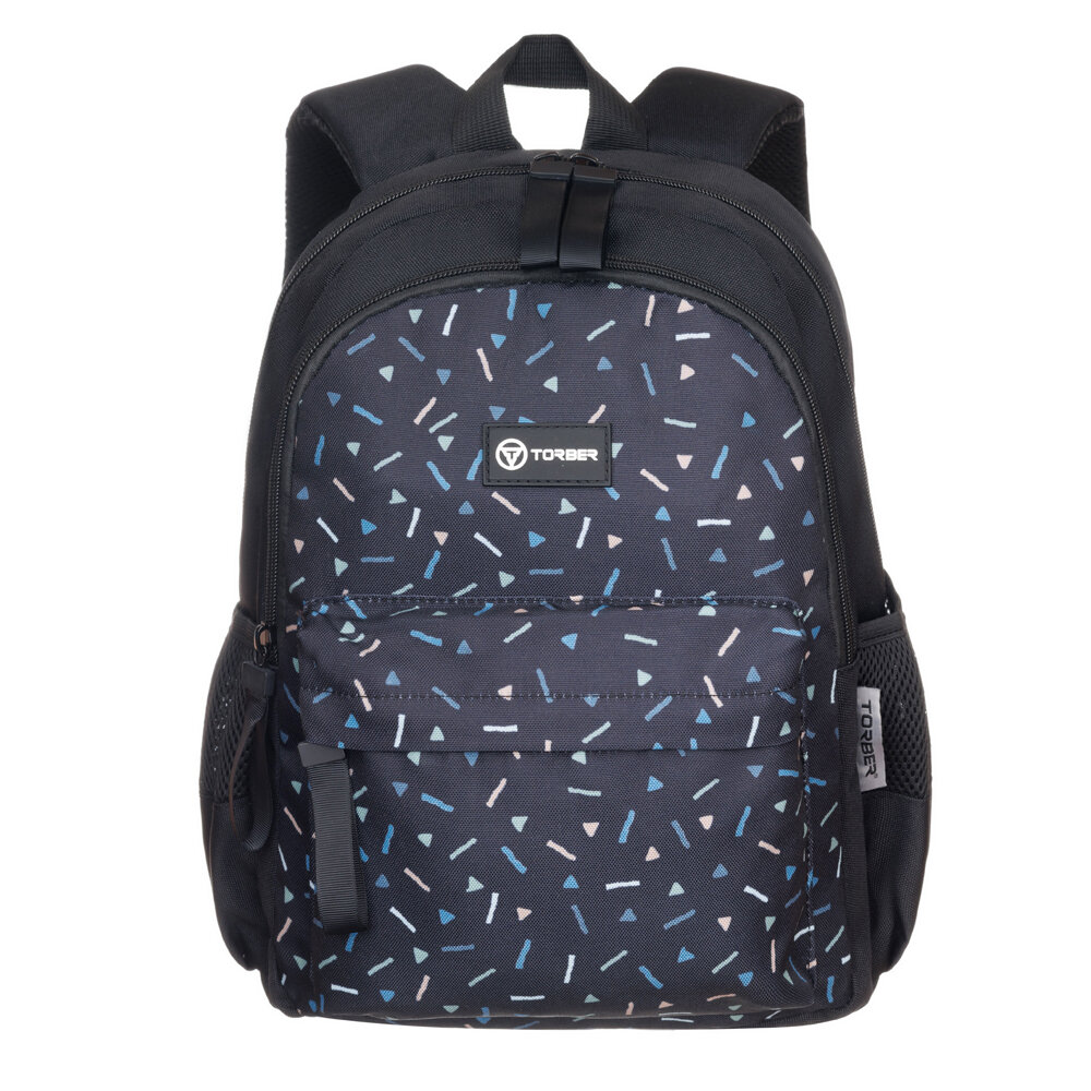 Купить Рюкзак TORBER CLASS X Mini T1801-23-Bl-G, черный/серый орнамент Фигуры, полиэстер, 35,5х25х12 см, 10 л + Мешок для сменной обуви в подарок!
