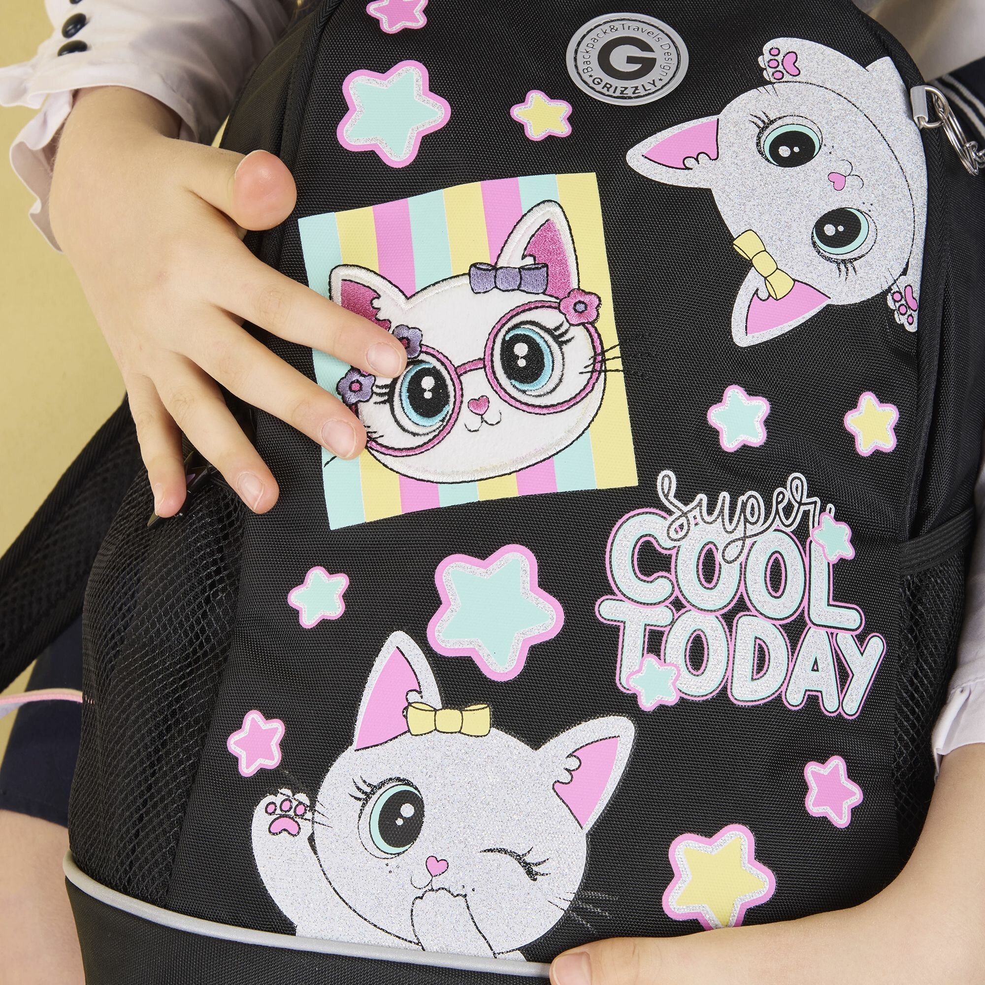 Рюкзак школьный GRIZZLY с карманом для ноутбука 13", жесткой спинкой, двумя отделениями, для девочки RG-563-10/1