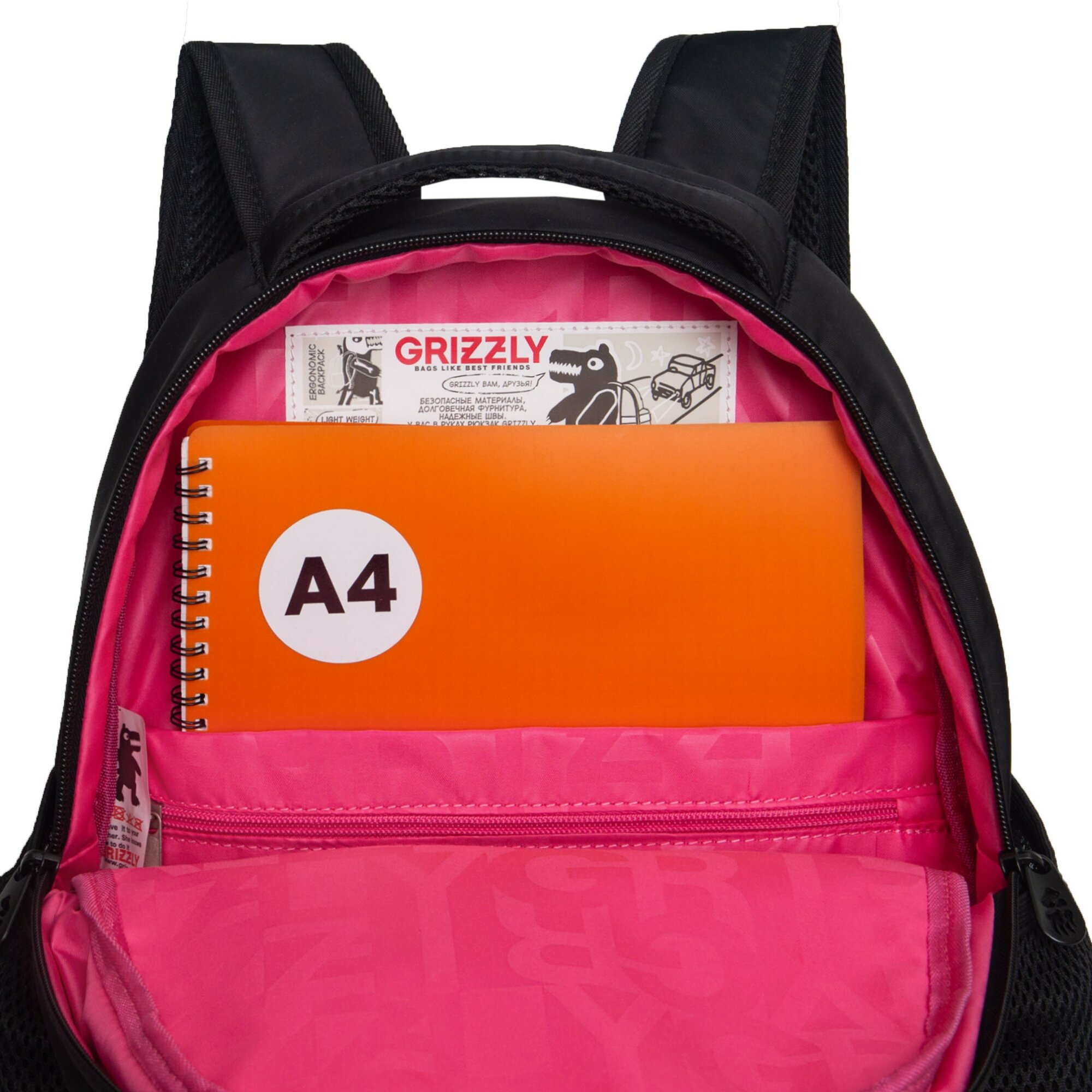 Рюкзак школьный GRIZZLY с карманом для ноутбука 13", жесткой спинкой, двумя отделениями, для девочки RG-563-10/1