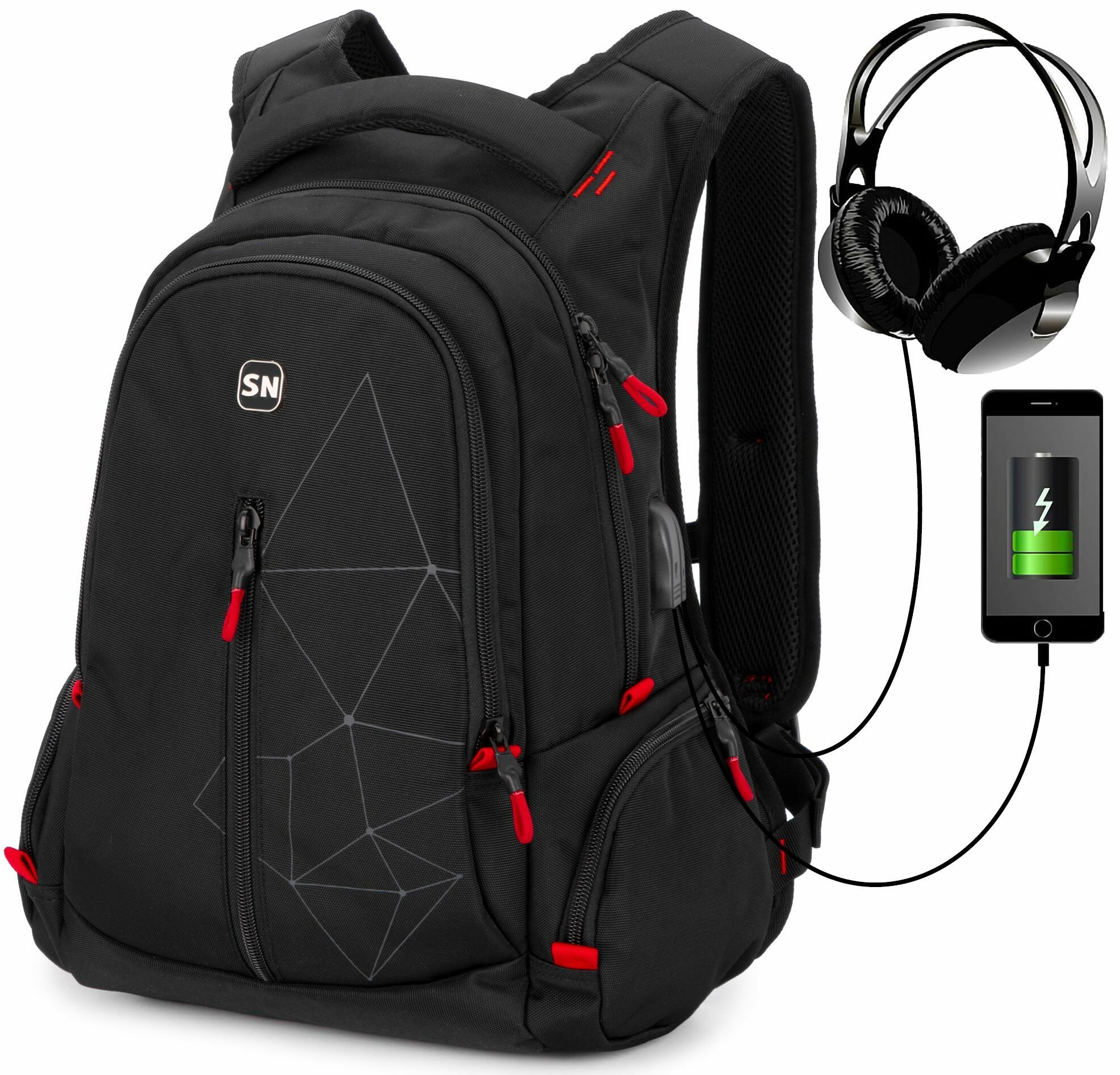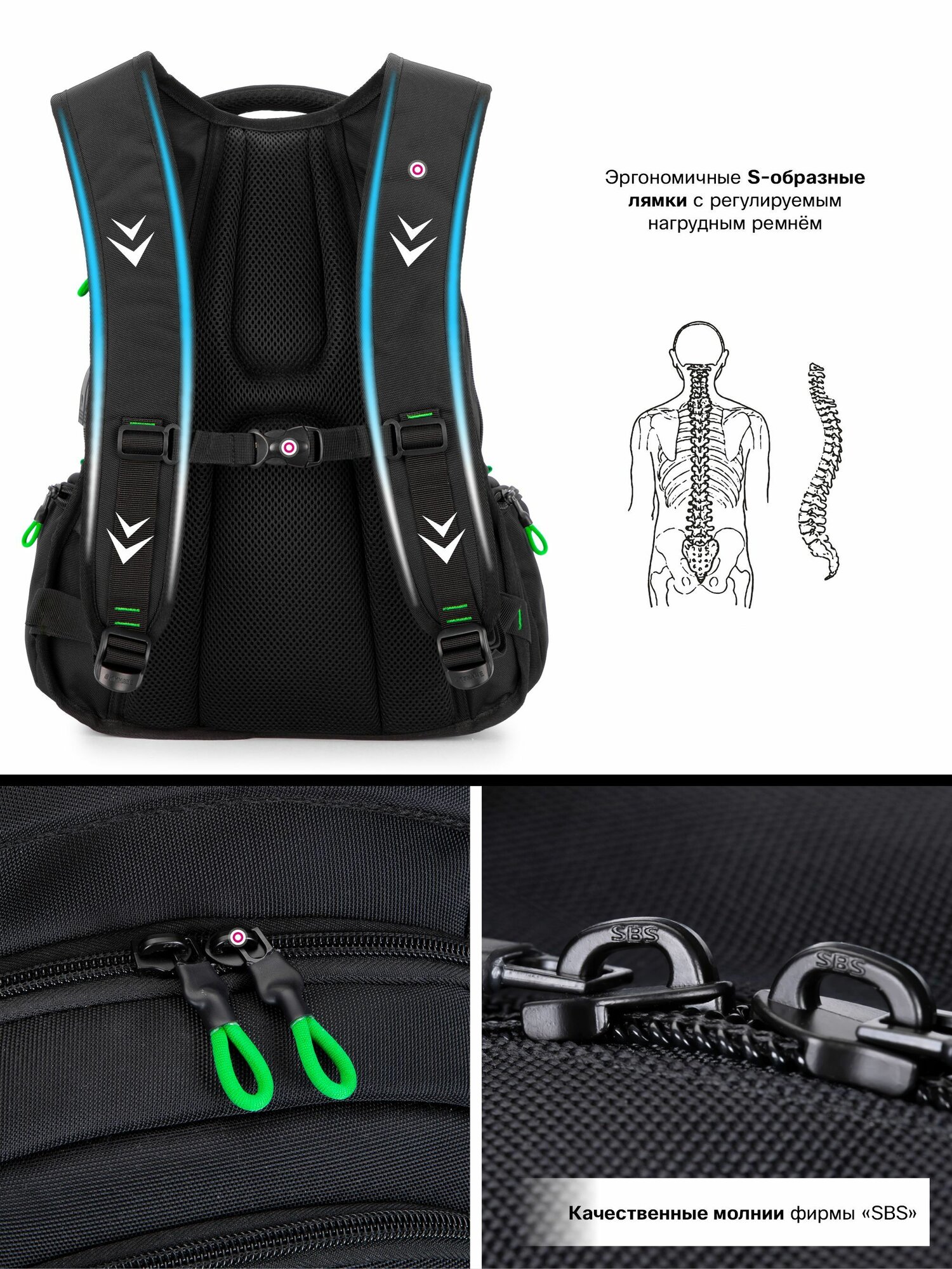Рюкзак школьный для мальчика подростка 20 л, А4, мужской с анатомической спинкой, SkyName (СкайНейм), со слотом USB и входом для наушников интересное: