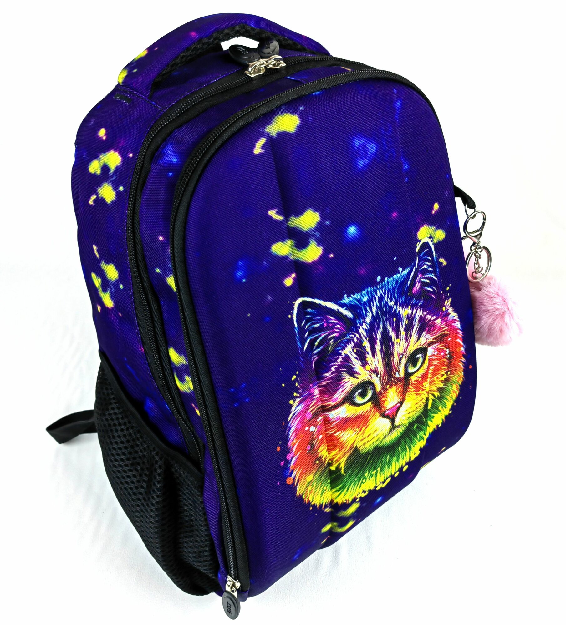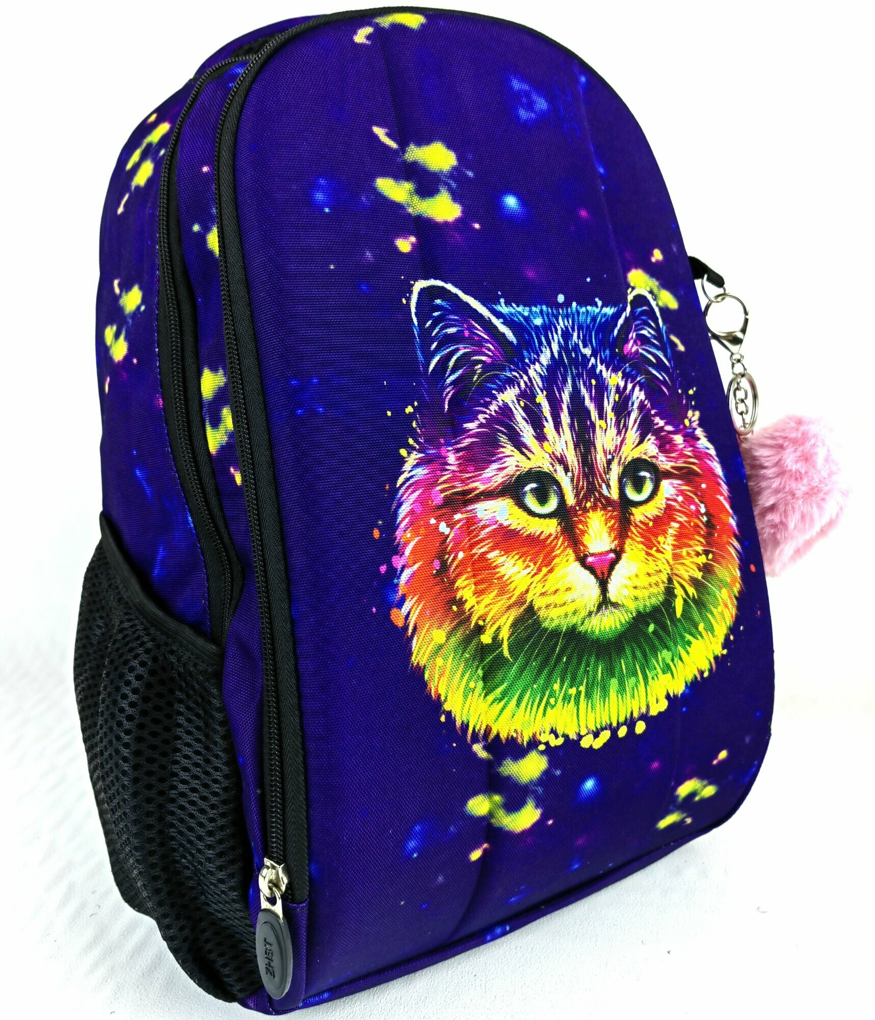 Рюкзак-ранец школьный ортопедический с брелком "Радужный Кот" для девочки, 20л, 38*25*17 см, черно-фиолетовый