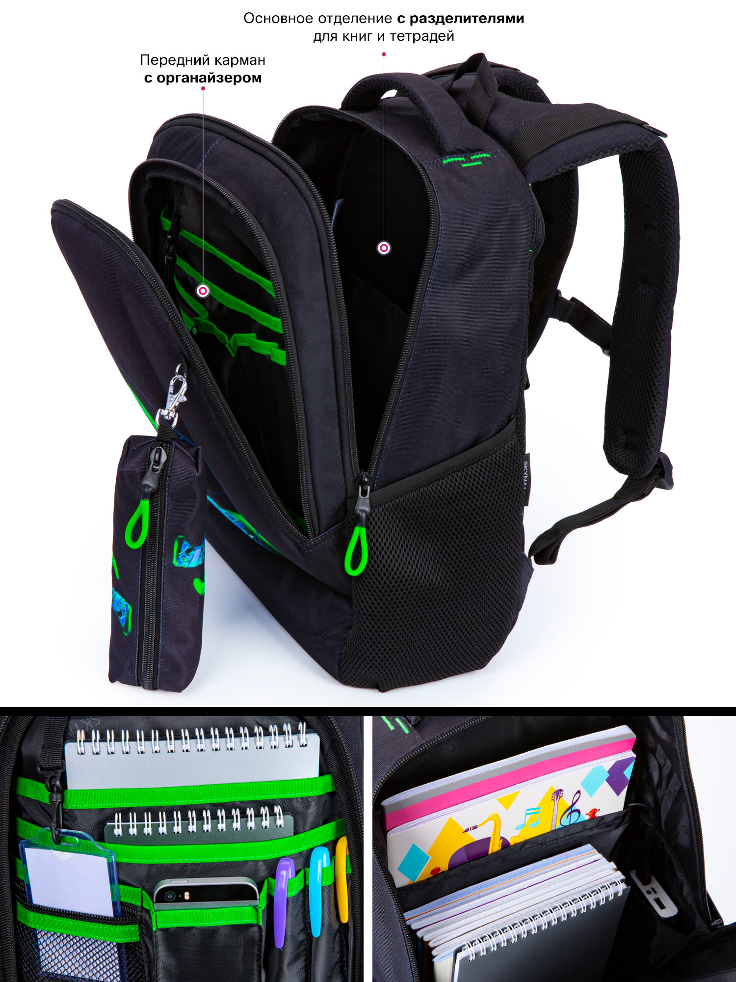 Рюкзак школьный для мальчика 17 л с анатомической спинкой SkyName (СкайНейм), с пеналом без наполнения интересное: