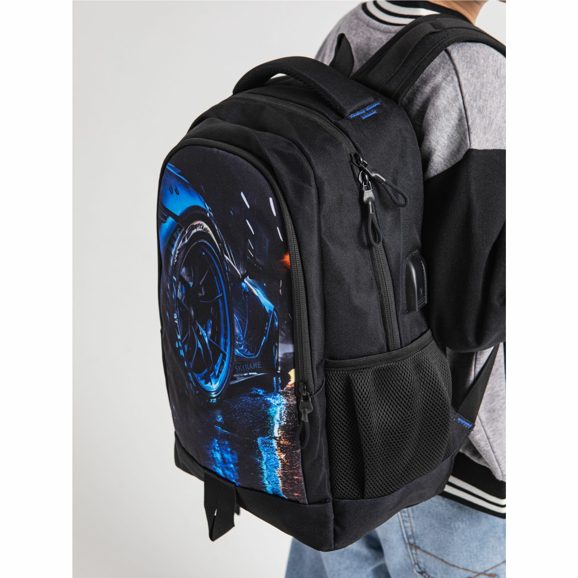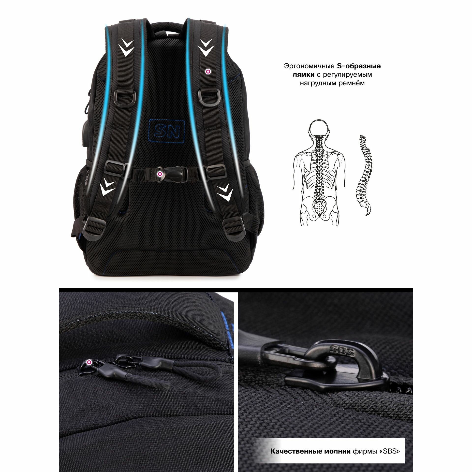 Рюкзак школьный для мальчика/девочки подростка 21 л А4 черный с анатомической спинкой + USB, SkyName (СкайНейм)