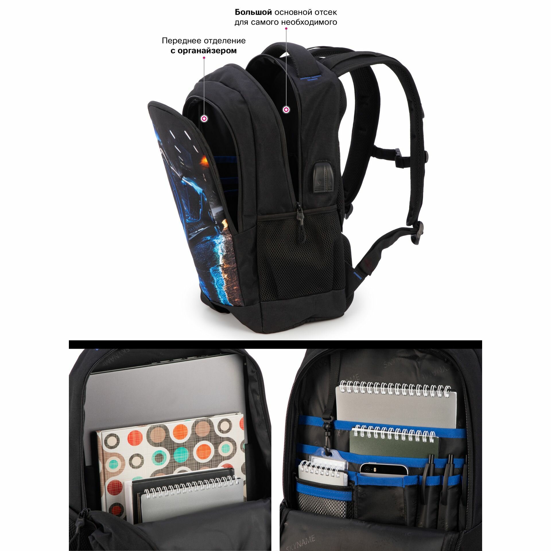 СохранитьРюкзак школьный для мальчика подростка 23 л А4, женский черный для ноутбука анатомическая спинка, SkyName (СкайНейм) интересное: