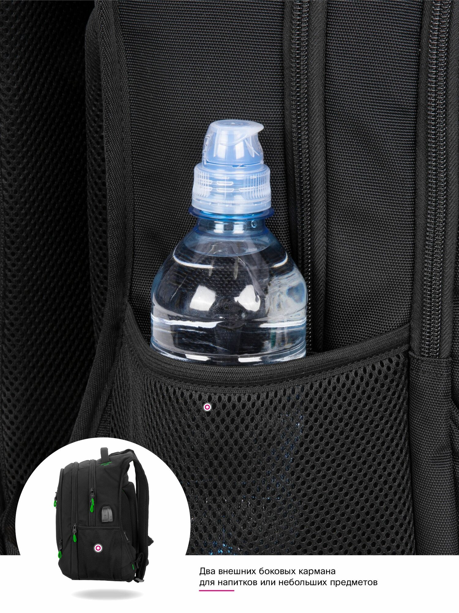 Рюкзак школьный для мальчика/девочки подростка 21 л А4 черный с анатомической спинкой + USB, SkyName (СкайНейм)