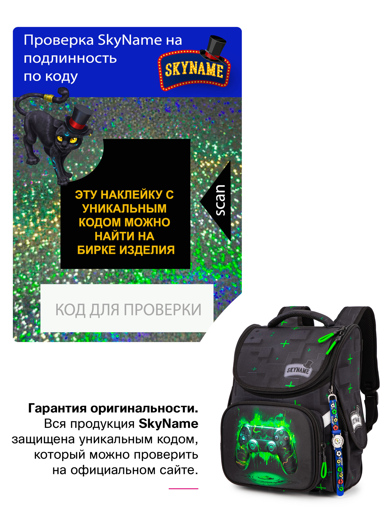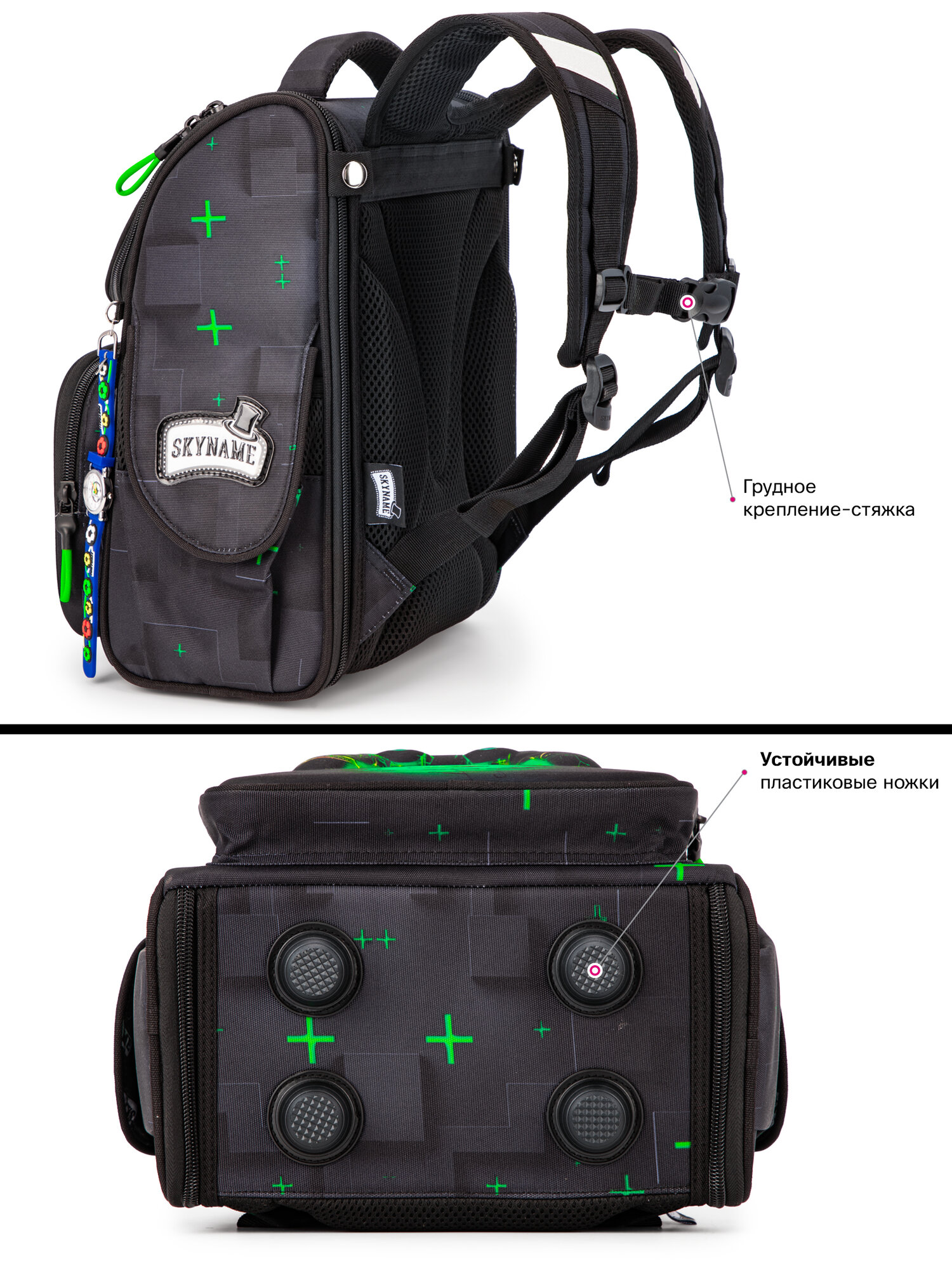 Ранец школьный для мальчика 15 л с анатомической спинкой SkyName (СкайНейм) с брелоком-часы