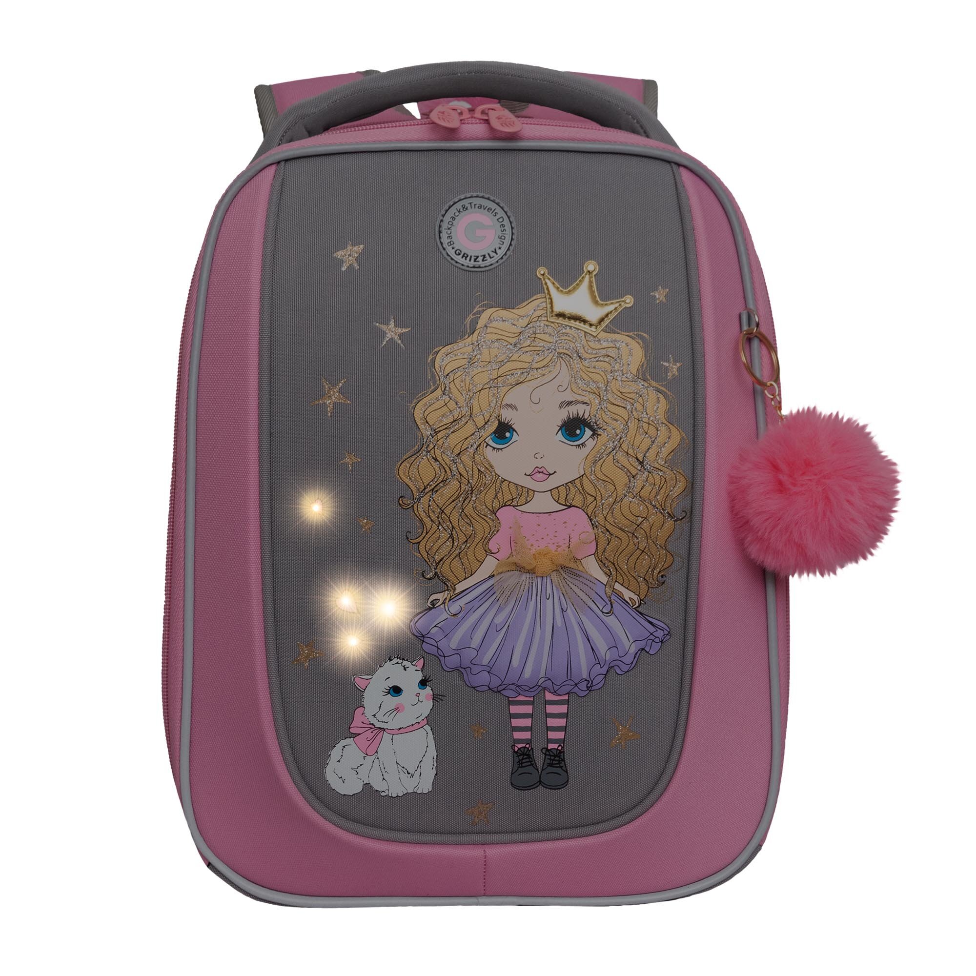 Ранец школьный формованный GRIZZLY с анатомической спинкой, на ножках, для девочки RAf-592-1/1