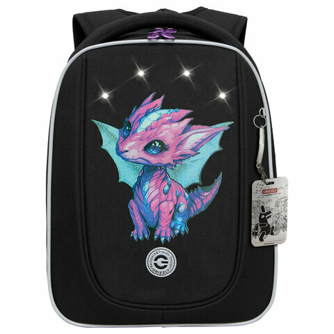 Купить Ранец GRIZZLY анатомическая спинка, с бейджем, для девочек, LITTLE DRAGON, 36х29х18 см, RAf-492-6/1