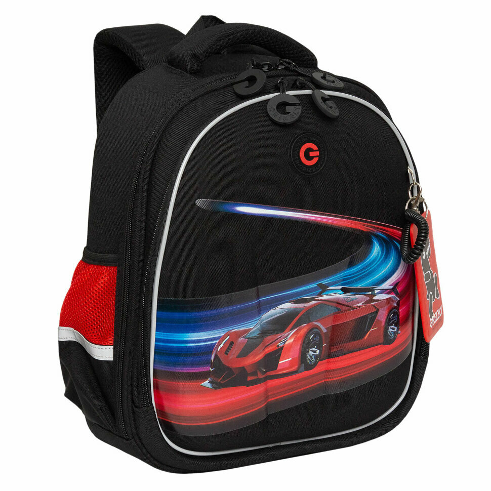 Купить Ранец GRIZZLY анатомическая спинка, с бейджем, для мальчиков, RACER, 36х28х20 см, RAz-487-12/1, 272804