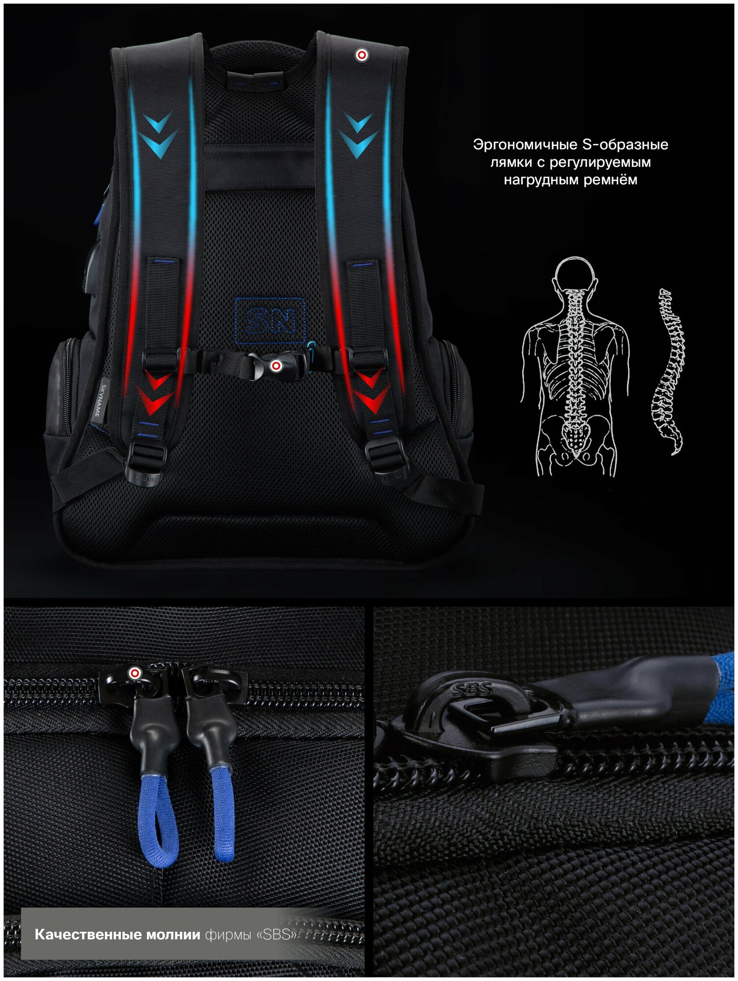 СохранитьРюкзак школьный для подростка 30 л А4 черный для мальчика/девочки с анатомической спинкой + USB, SkyName (СкайНейм) интересное:
