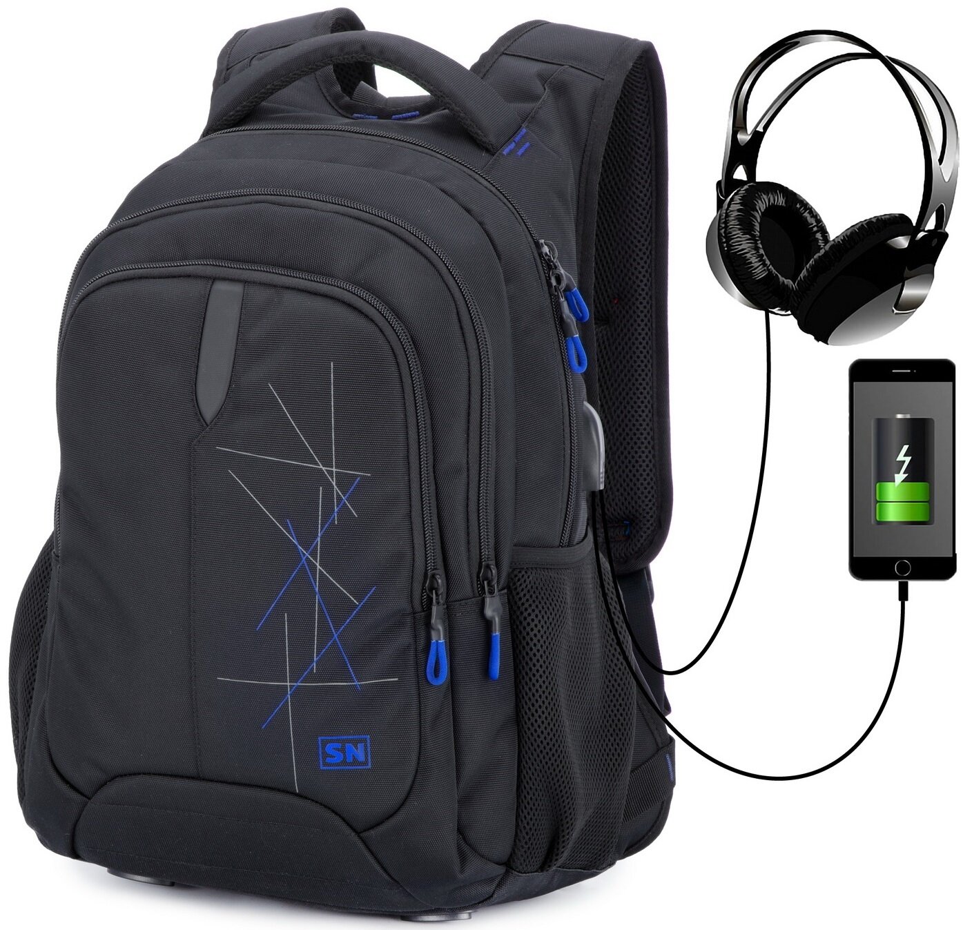 Рюкзак школьный для мальчика 20 л А4, черный для ноутбука городской анатомическая спинка + USB, SkyName (СкайНейм)