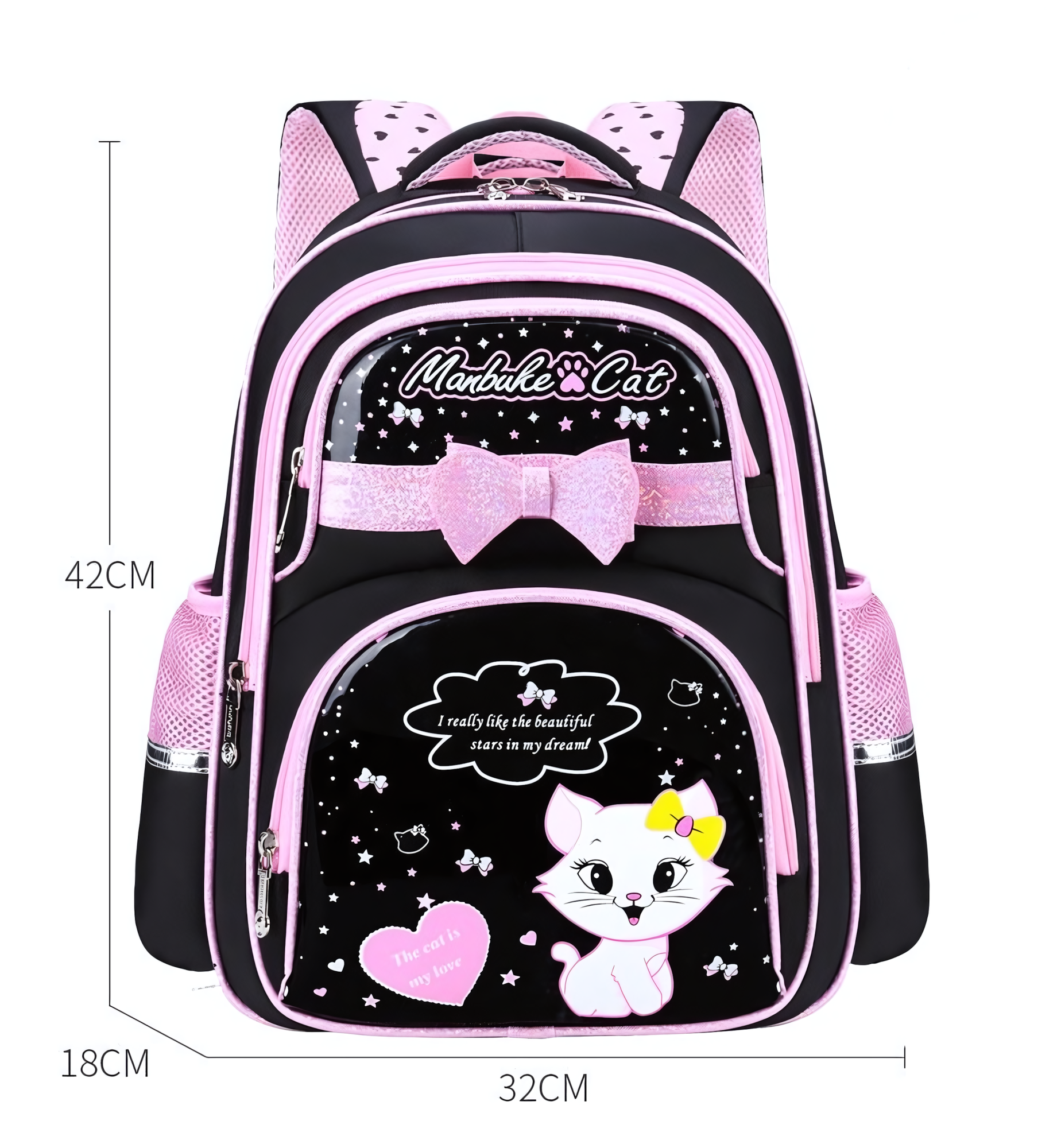 Рюкзак школьный для девочек, 3-6 класс + сумка для занятий + пенал, розовый с принтом "кошки"