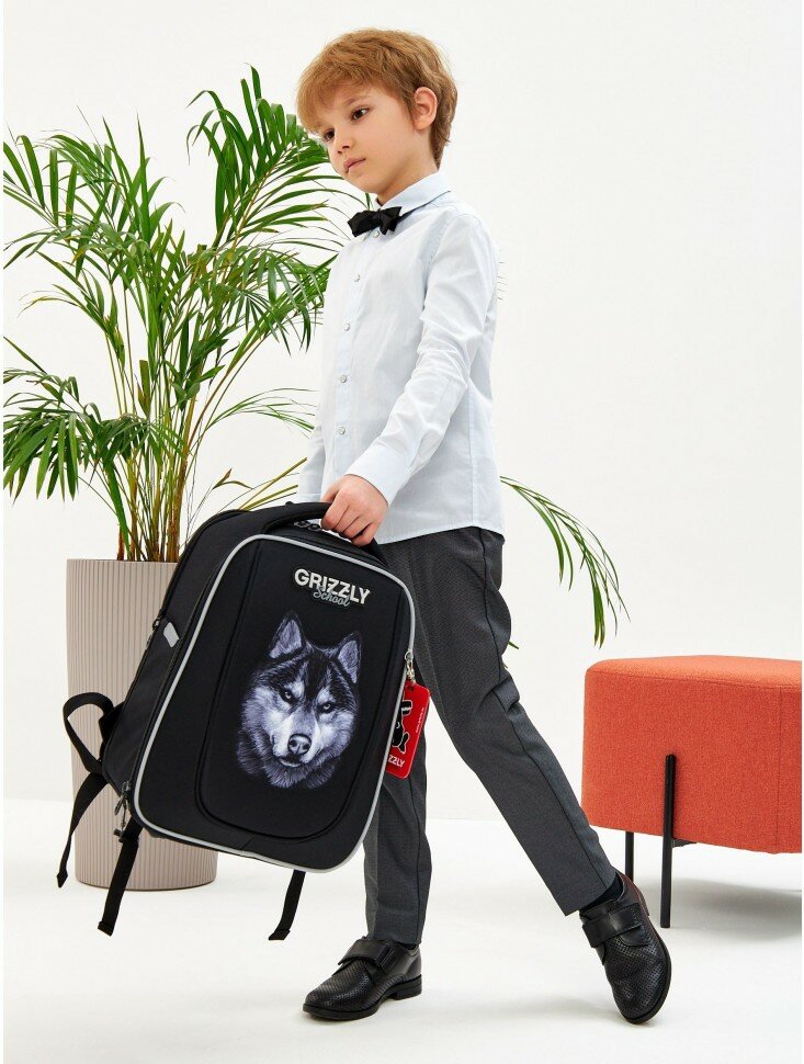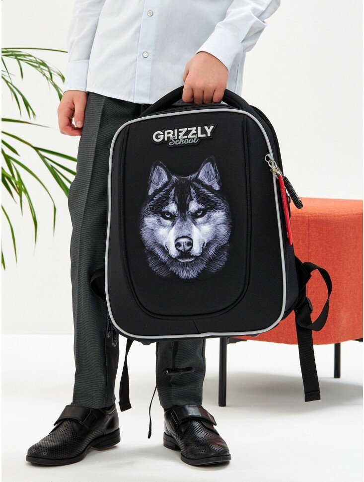 Ранец школьный формованный GRIZZLY с анатомической спинкой, на ножках, для мальчика RAf-493-2/2