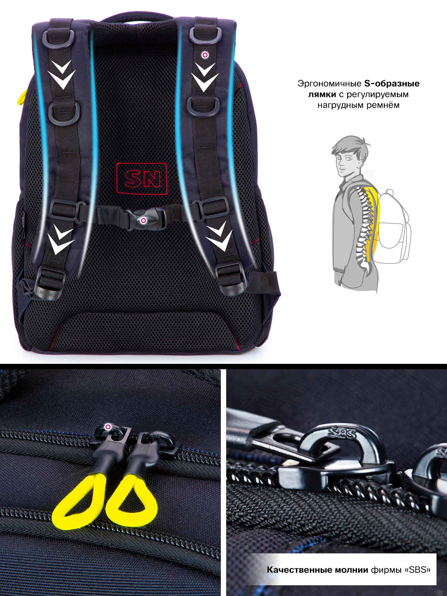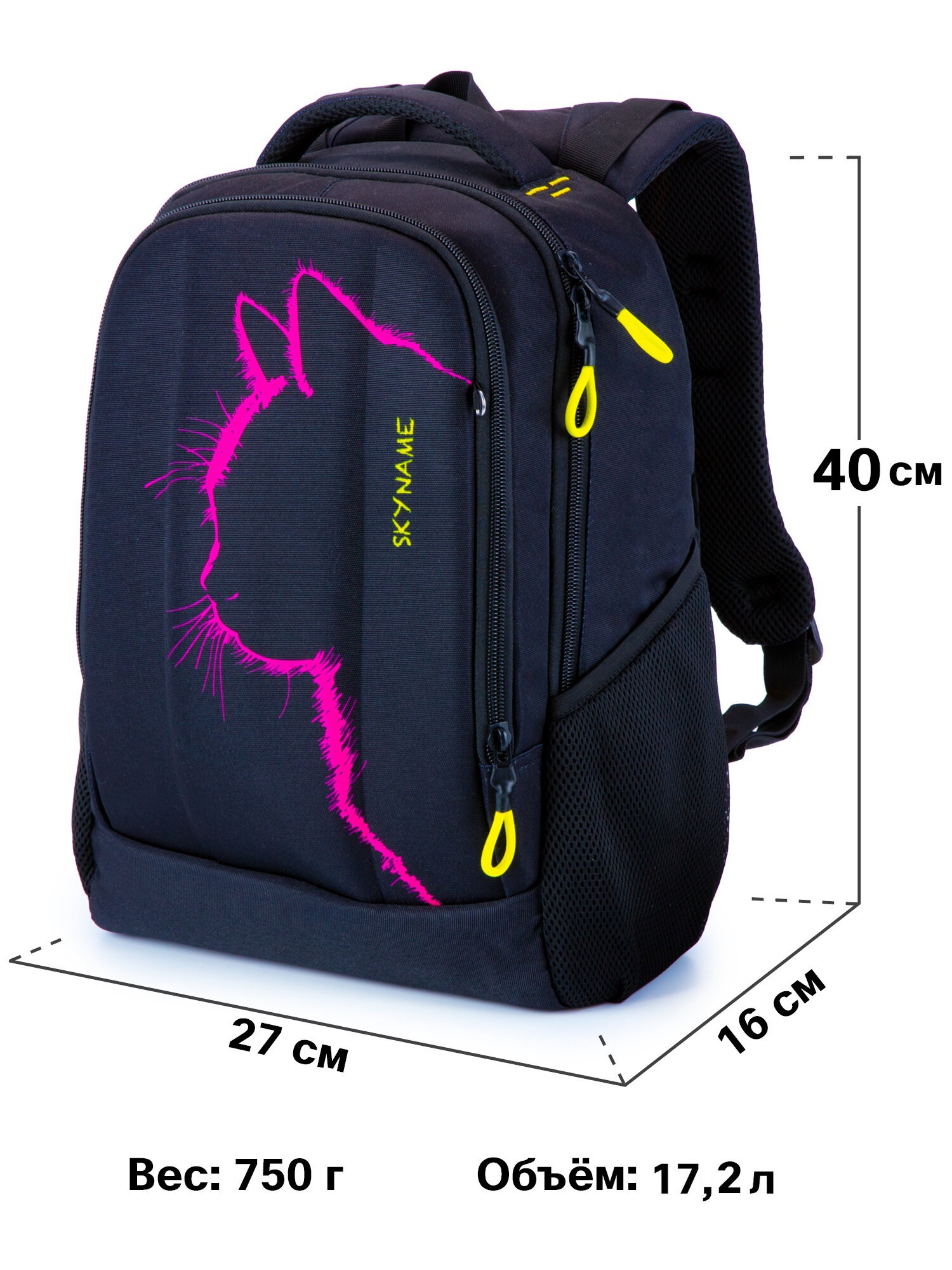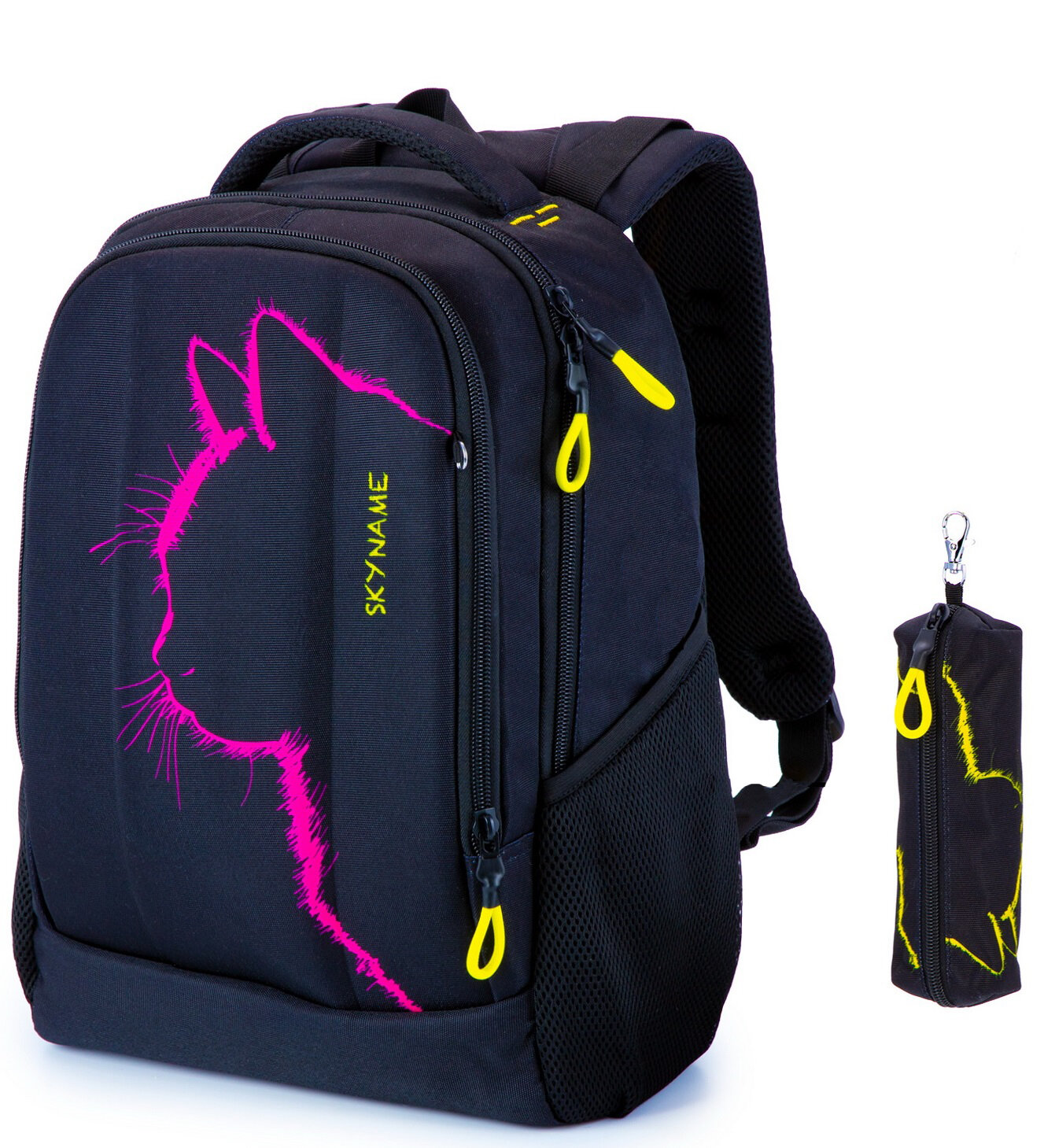 Рюкзак школьный для девочки 17 л с анатомической спинкой SkyName (СкайНейм), с пеналом без наполнения интересное: