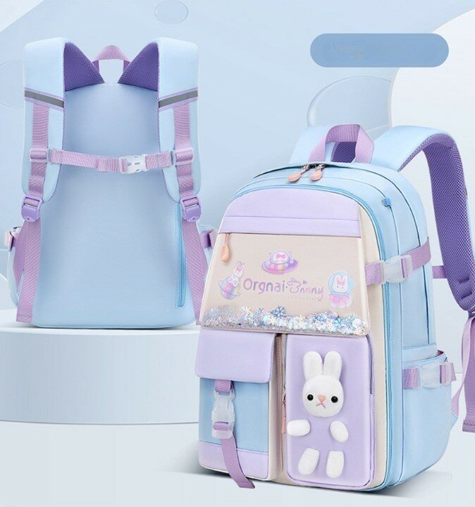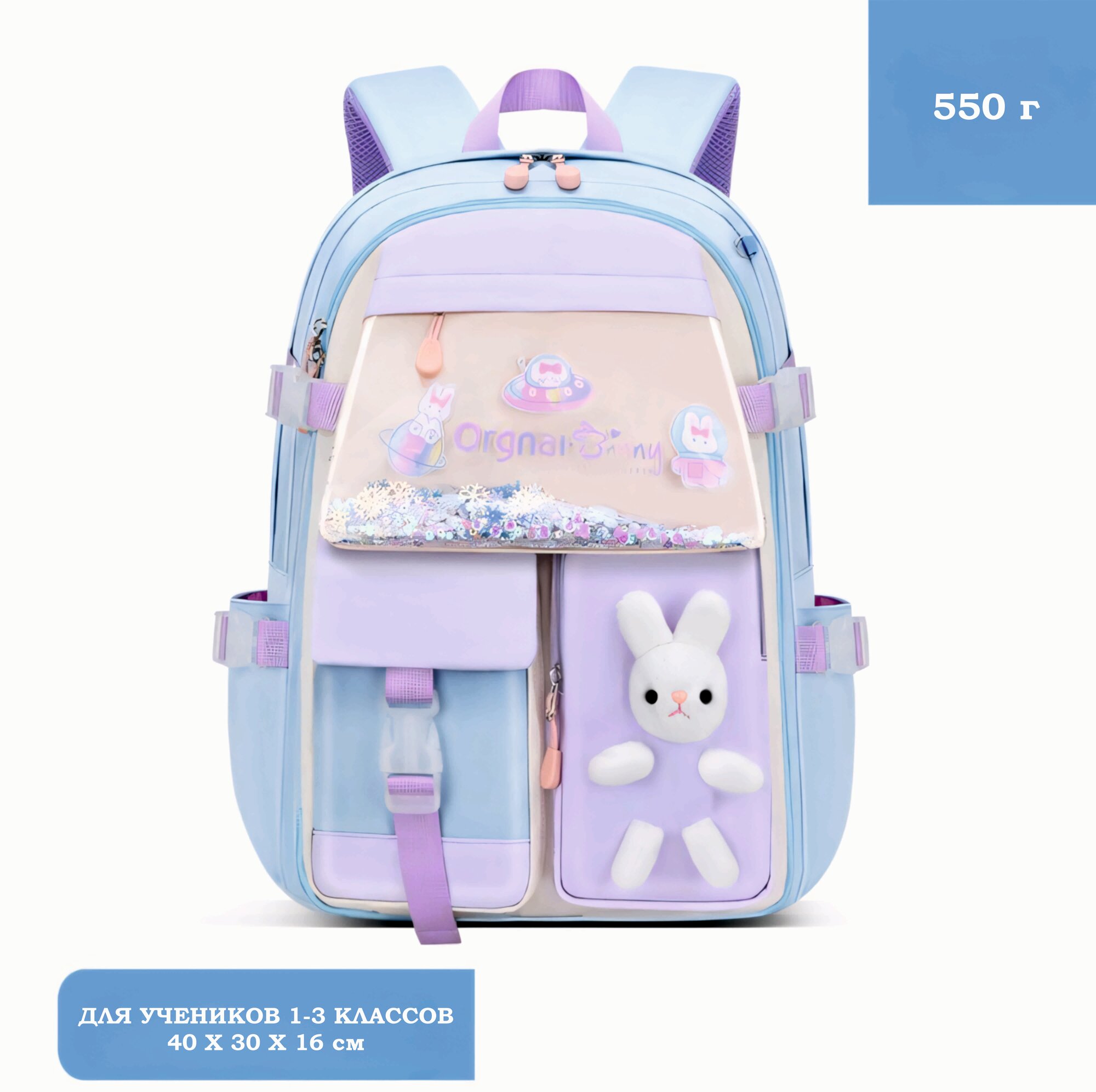 Рюкзак для начальной школы, 3-6 класс, для девочек, голубой с зайкой