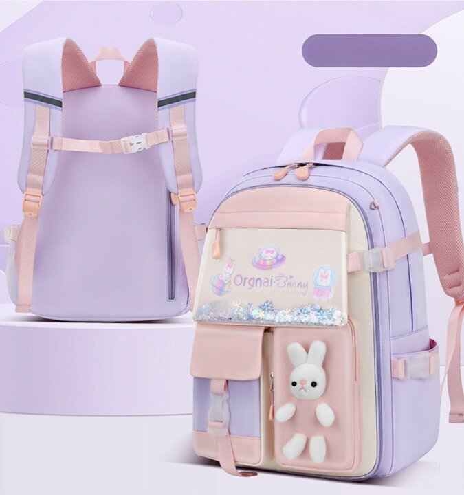 Рюкзак для начальной школы, 3-6 класс, для девочек, розовый с зайкой