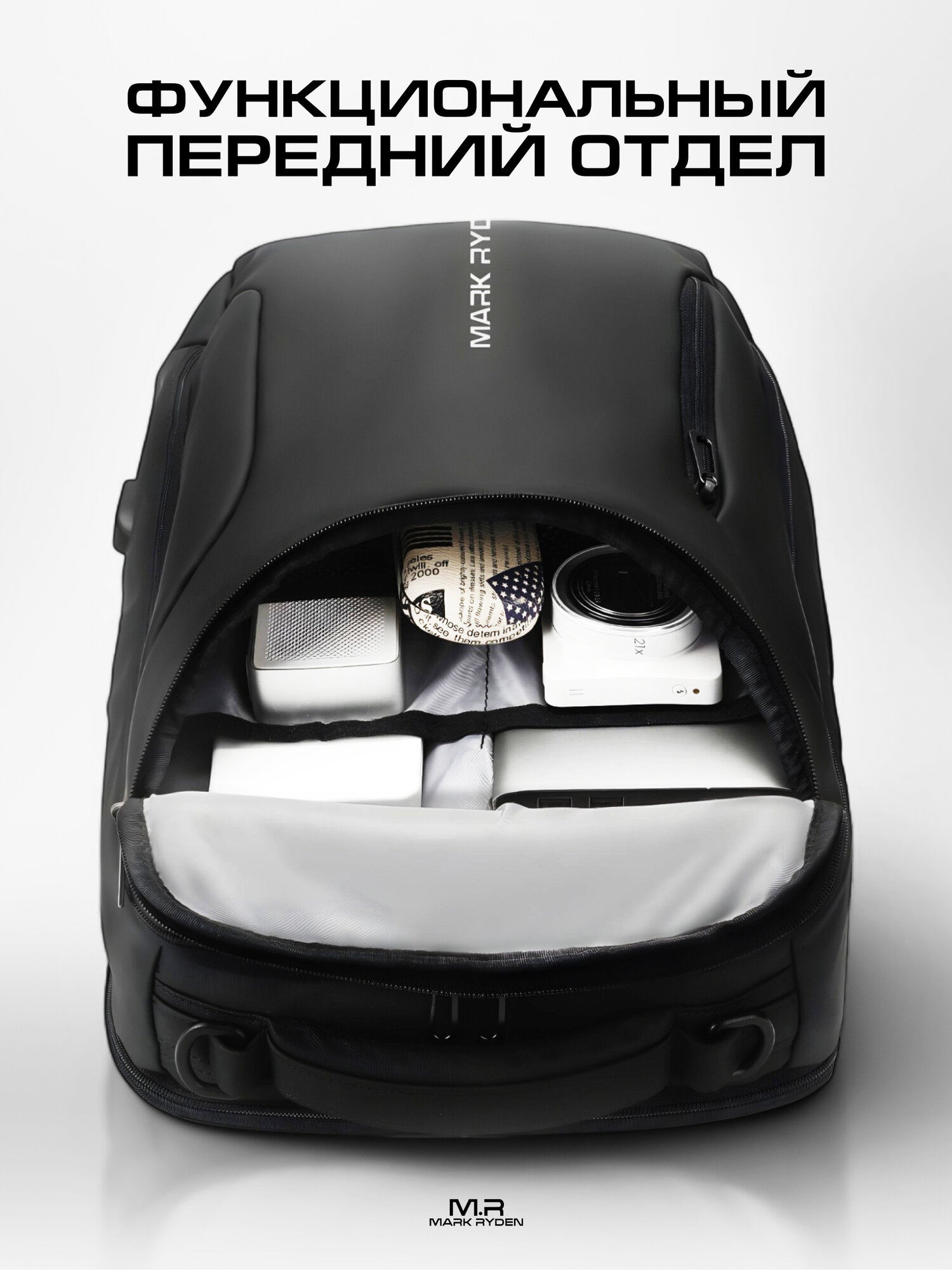 Рюкзак черный школьный подростковый Mark Ryden водонепроницаемый с USB зарядкой, 28л для ноутбука 17,3. интересное: