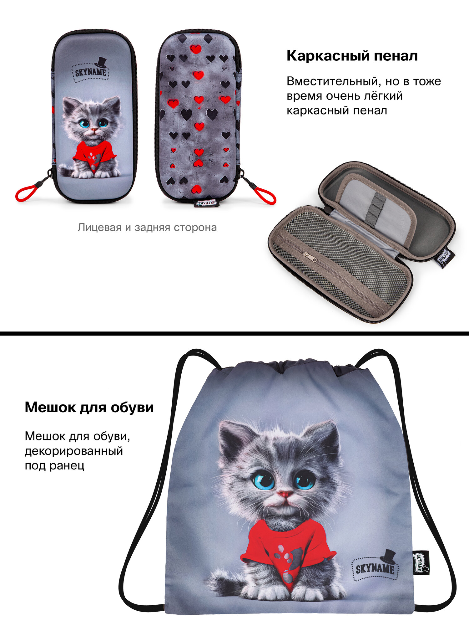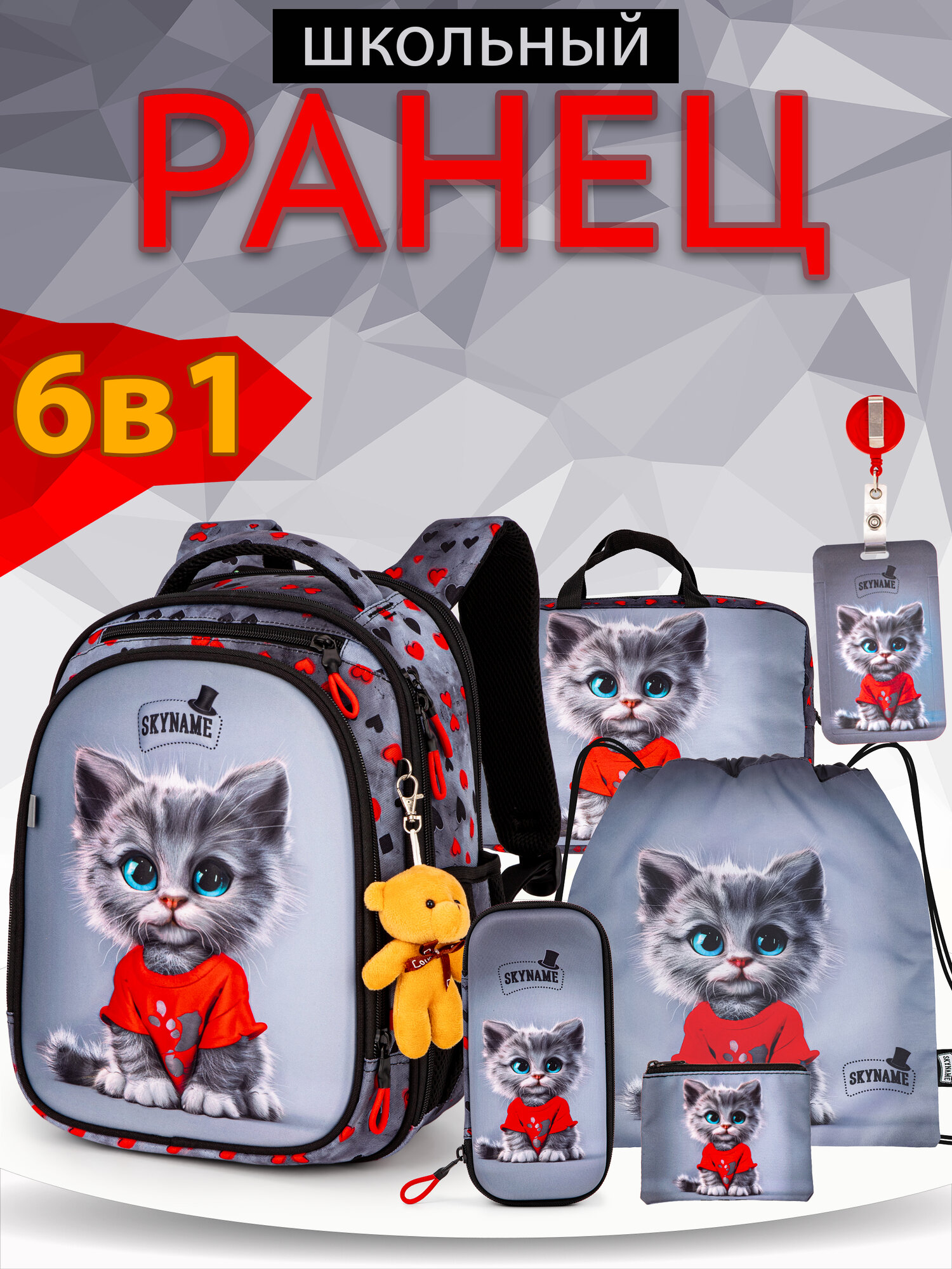 Рюкзак школьный 16 л для девочки начальной школы, с анатомической спинкой, набор 6 в 1 + брелок в подарок, SkyName интересное: