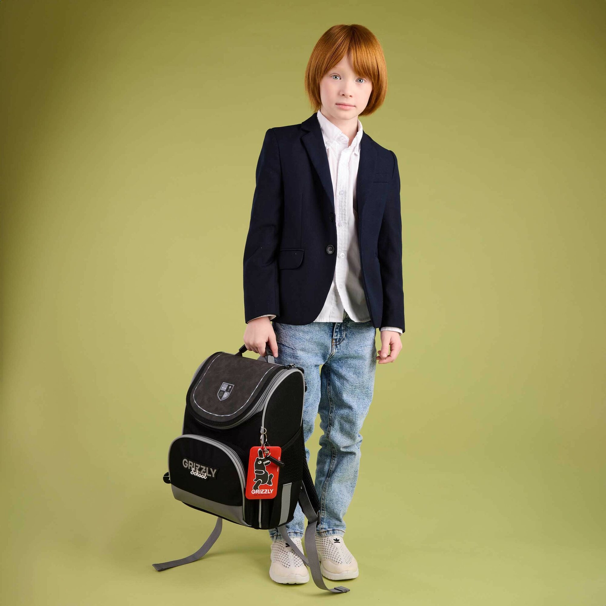 Ранец школьный GRIZZLY суперлегкий с анатомической спинкой, на ножках, с мешком для обуви, для мальчика RAm-585-1/1