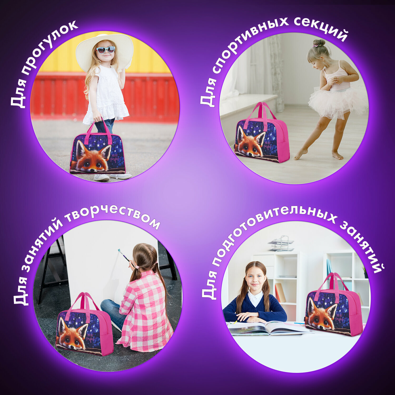 Сумка для занятий Brauberg с ручками, 35x25x15 см, Cute fox, 272379 интересное: