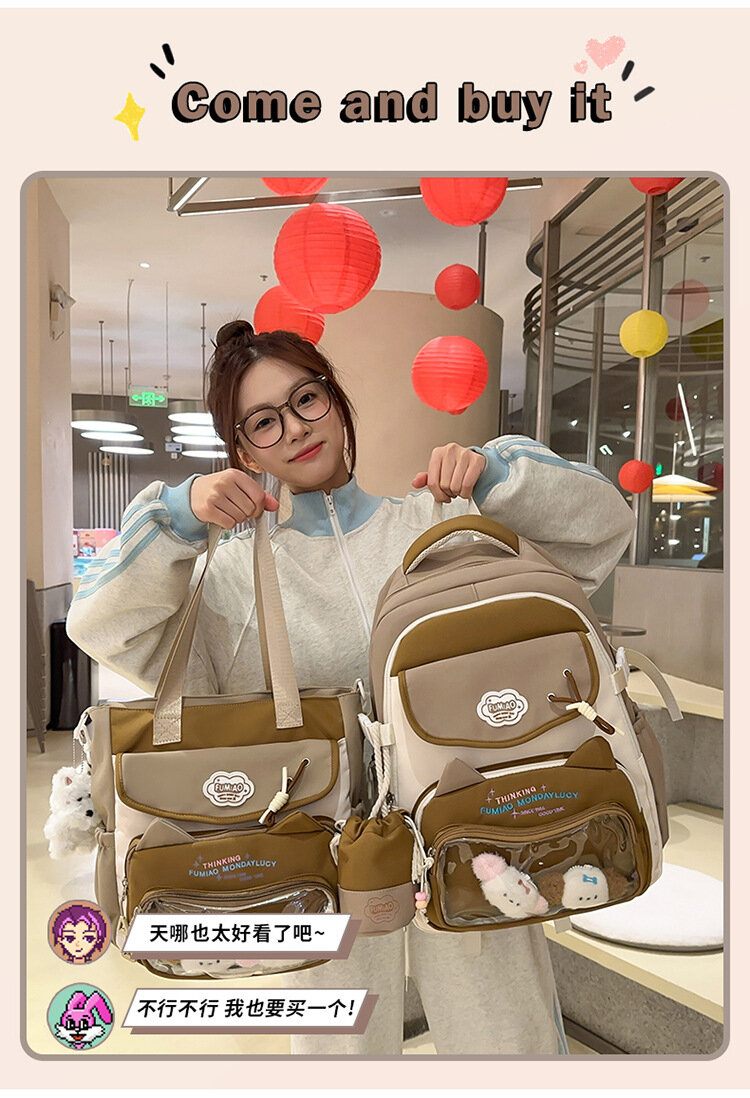 Рюкзак Lucky Bag, для школьников, комплект из трех частей, цвет темный хаки