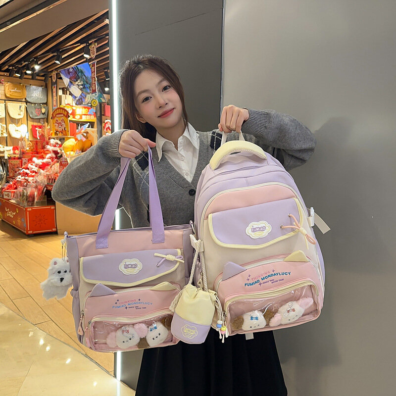 Купить Рюкзак Lucky Bag, для школьников, фиолетовый, комплект из трех частей