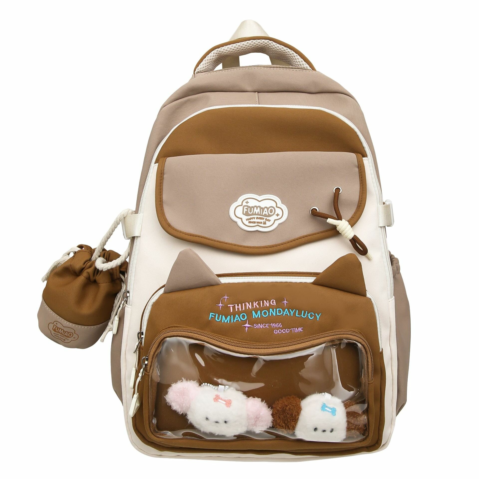 Рюкзак "Милый Кот", для школьников, большой, темный хаки