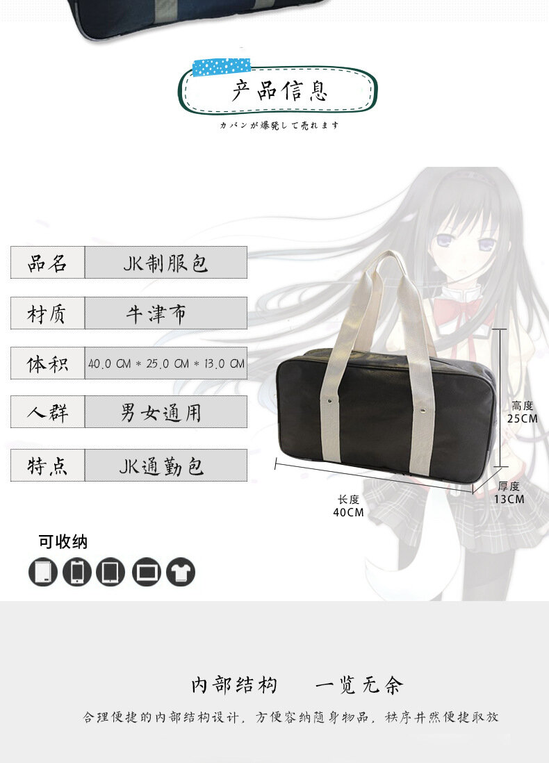 Сумка JK, трансграничная, японская, ткань Оксфорд, большая, черная интересное: